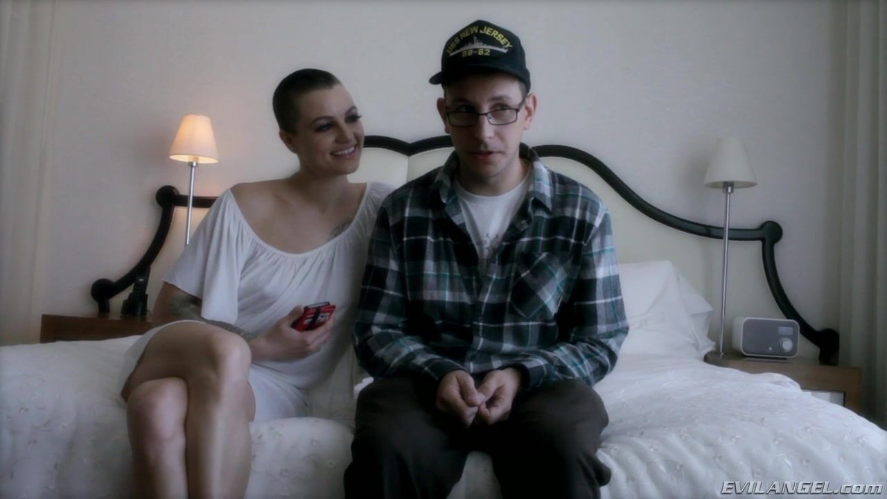 Sporting black, close-cropped hair and a sheer white dress, tattooed porn queen Belladonna is hungry for cock. While she waits for muscular stud Jordan Ash, she chats with a journalist; Jordan finally arrives and spreads Bella's thighs to lick her neatly groomed pussy. Bella gets on all fours and takes his meaty prick down her throat, gagging on its length, before submissively sticking her fine ass in the air and letting him invade her bunghole. After an athletic anal scene with lots of nasty ass-to-mouth cocksucking, the all-natural cutie swallows his cum, draining his balls with her suctioning mouth.