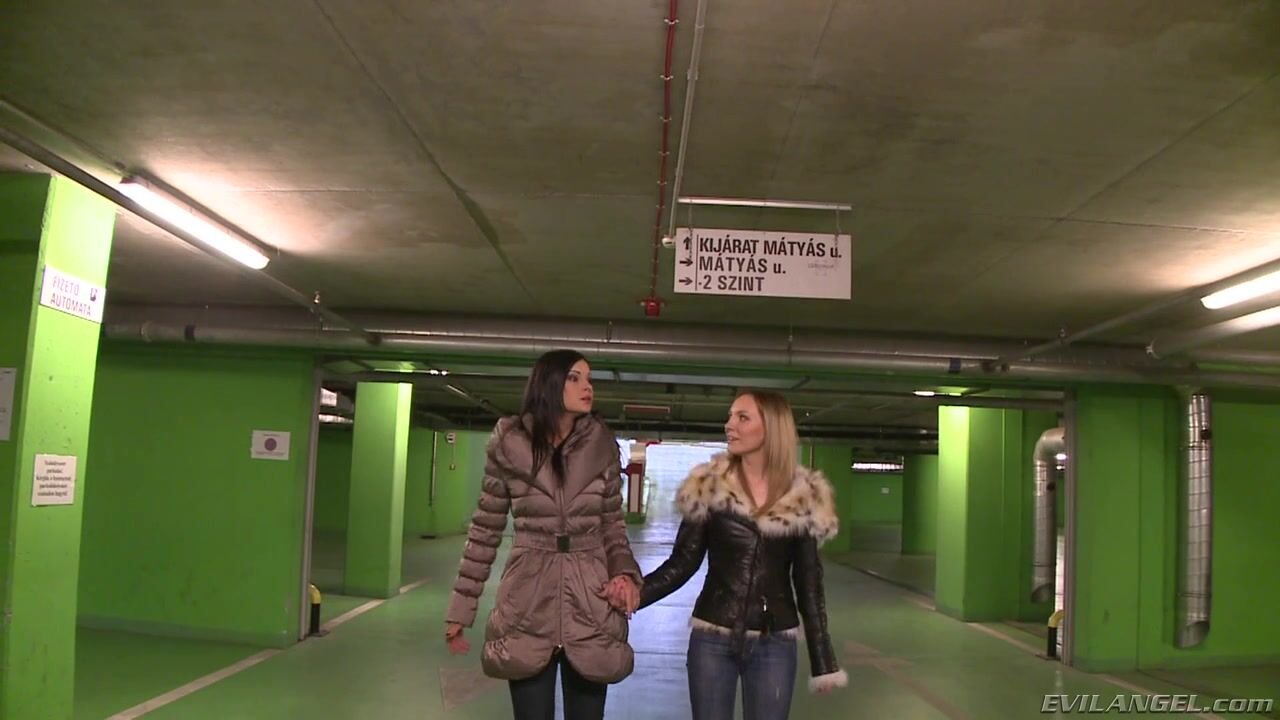 Description: Out on the city streets, petite, gorgeous brunette Abbie Cat leads slender blonde Nataly Von to an underground parking garage, where waits her perverted friend, director Christoph Clark. The curious young girls give the scary stranger an impromptu, semi-public striptease followed by a double-blow job! He pushes the tiny sluts against the concrete wall to fuck them from behind. Next, he brings both girls home for a session of anal rimming, hard-core butt fucking and ass-to-mouth training. The lingerie-clad babes stroke his pecker with their stockinged feet and bare soles. Christoph sucks their toes and cums onto Abbie's feet.