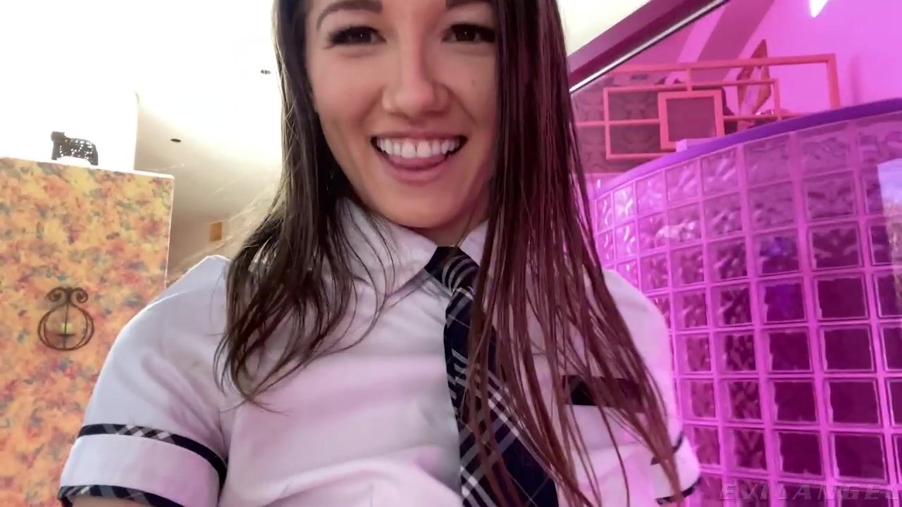 Young, dark-eyed Maya Woulfe wears a schoolgirl outfit: plaid skirt with matching tie; white blouse, stockings and heels. She exposes her natural tits, lacy panties, bald twat and butthole. In selfie-style phone footage, Maya talks dirty, masturbates, squirts and tastes her juice! She flashes a huge, excited smile for director/stud Mick Blue. His POV-style footage shows Maya kneeling submissively for a blowjob with spit-lubed stroking, ball lapping and camera-eye contact. His uncut meat fucks her cunt as he strokes her clit and kisses her mouth. She throws her head back in orgasm. Mick's two-hand choking ups the intensity! He slaps her natural tits and spanks her ass pink; he rims her and fucks her face. Maya squeals through doggie-style manhandling as lube and juice soak gash, dick and nut sac. She tongues Mick's bunghole. He sucks her clit to another squirting ejaculation. See lots more passionate sucking and slam-fucking in various positions. A cum facial splashes Maya's forehead, eyes and tongue.