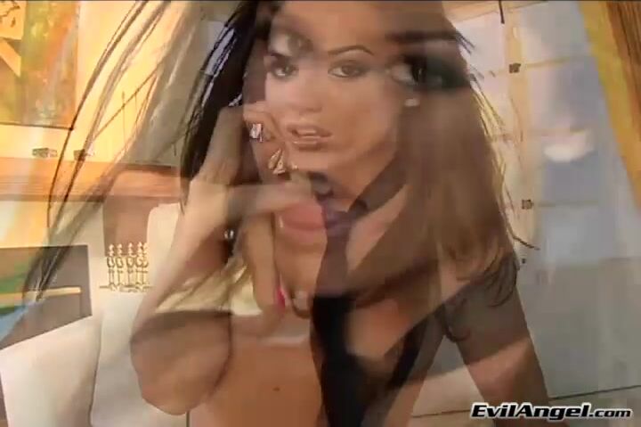 Description: Tori Black absolutely looks her most glam in front of Jonni's lens, lounging in a fashionably fetishy topless outfit, purple bootie shorts held up by suspenders. She gyrates through an extended glam tease until the mood takes a sudden turn for the dark - dark meat, that is! Sean Michaels and Richard Mann stride into frame, both already naked and erect. Tori immediately goes to work on them, talking to the audience as she slurps and slobbers away. Drowning herself in black cock, she pushes the guys to get nastier with her, before climbing on Mann for cowgirl while leaning over to suck off Sean some more. Through all the highly athletic positions, Tori's pussy and mouth are constantly full, slamming her hard as she begs for more. Her tiny little hole doesn't look like it can take it ... but it does! At last, she falls to her knees growling and moaning for a double-shot of African-American cum, and she is accommodated.