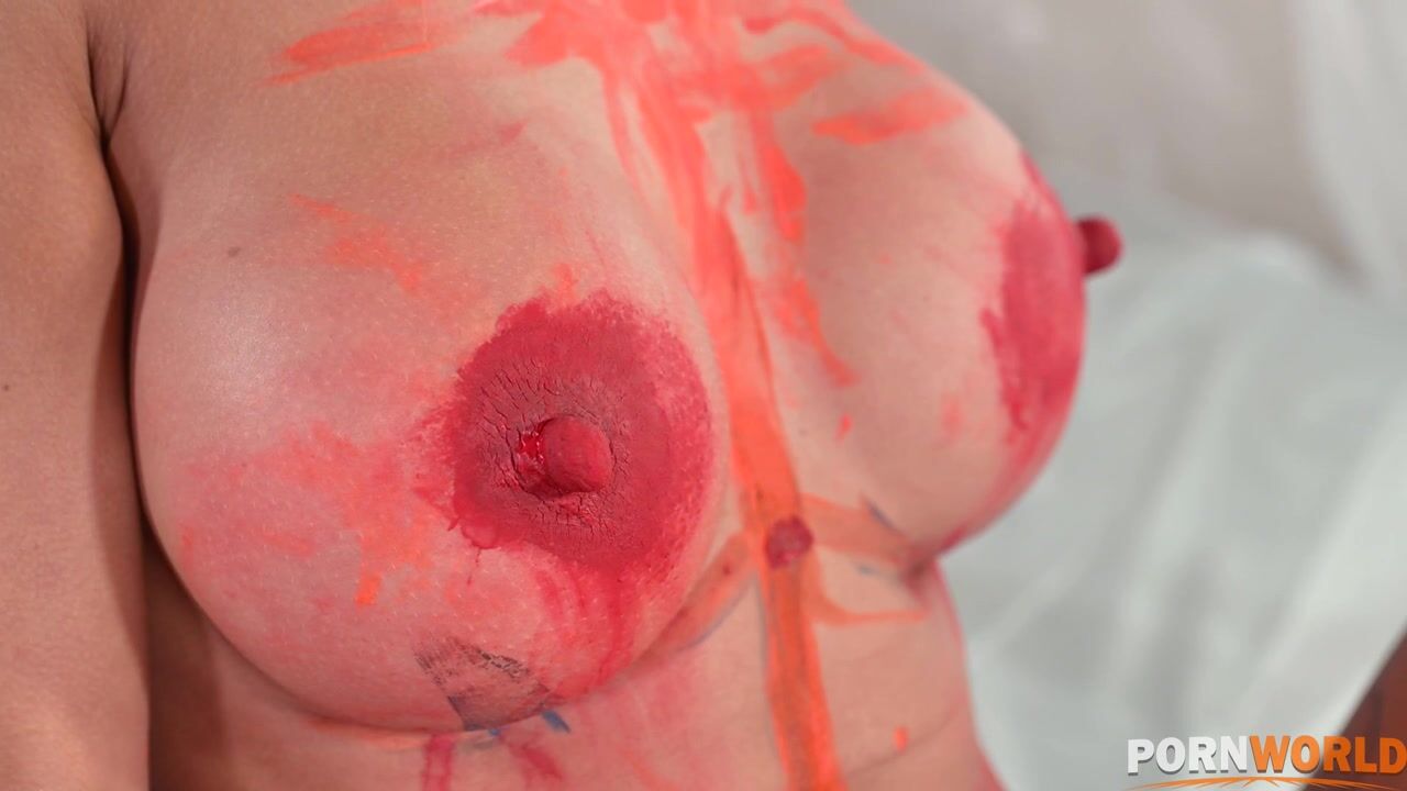 Playful blonde Shalina Devine has the paint brushes out and instead of working on canvas, she decides to paint herself instead! She starts with her legs and slides the paintbrush up to her thigh before lifting up her tank top to cover her underboob. Shalina paints her big nipples and then admires her reflection in the mirror while rubbing her hands over her tits. Once she is completely naked, this stunning girl covers her trimmed pussy in green paint and pleasures herself with a glass dildo when her boyfriend, Vince walks in on this unusual situation! She talks him into joining her and after she paints his chest, things turn sexual very quickly and he fucks her from behind with his big dick while they stand in front of their windows. Shalina gets her pussy and ass demolished before she takes her boyfriend's load all over her tongue!, 03/15/2023