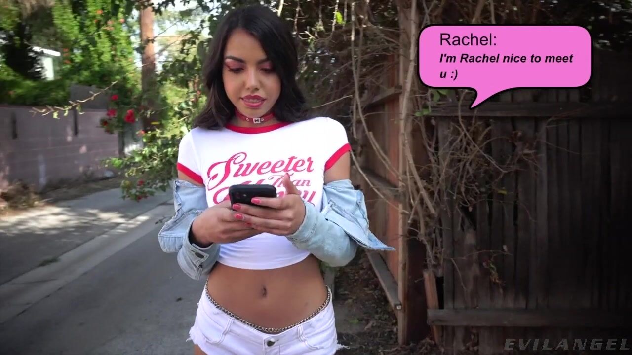Brace-faced brunette Rachel Rivers has been searching social media for a freaky adventure. She flirts in a tight T-shirt and ripped white denim. Dominant fucker Bryan Gozzling gives her a rim job, making her squirm in anticipation of his big cock. He slips his fingers into her twat and then shoves his boner into Rachel's mouth for a drooling blowjob. She spreads her legs and gasps as Bryan's dick porks her nubile pussy. Rachel cleans his meat with her tongue. Spit coats her face and tears stream from her eyes! The submissive cocksucker collects drool in a pitcher, and she revels in a hot cum facial.