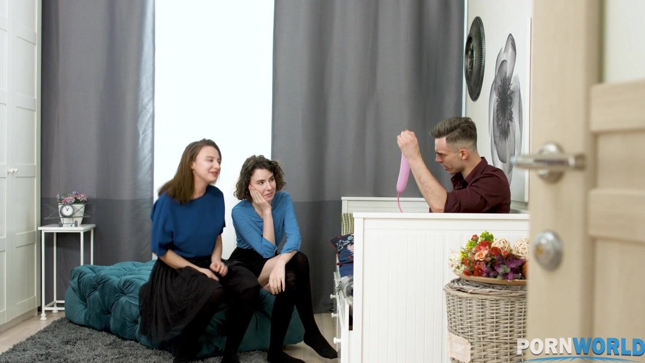 Willy is jerking off in his room when he’s busted by his two flatmates Darcy Dark and Kristi. Wondering how big his cock is, the two girls ask him to pull it back out. Embarrassed but still horny, Willy pulls his cock out, and the two young sluts immediately start sucking. The trio then has a hot fuck session on the couch before willy empties his balls into their mouths., 05/06/2022