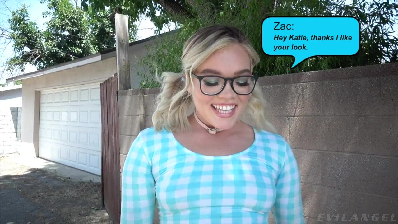 Bookish blonde Katie Kush has a kinky side. She teases in thick-framed glasses and revealing shorts. Zac Wild squeezes her plump ass and sweet tits; he unleashes his cock for Katie to play with. She gives him a deepthroat blowjob and then gasps as he fills her pussy with a purple toy. Foot fetish: Katie gives him an oily foot job! She climbs on top to take a tight cock ride. Zac oils up Katie's sensitive cunt and fucks her from behind, drilling passionately. Katie offers him a tasty rim job and tops off the action by taking a mouthful of sperm.