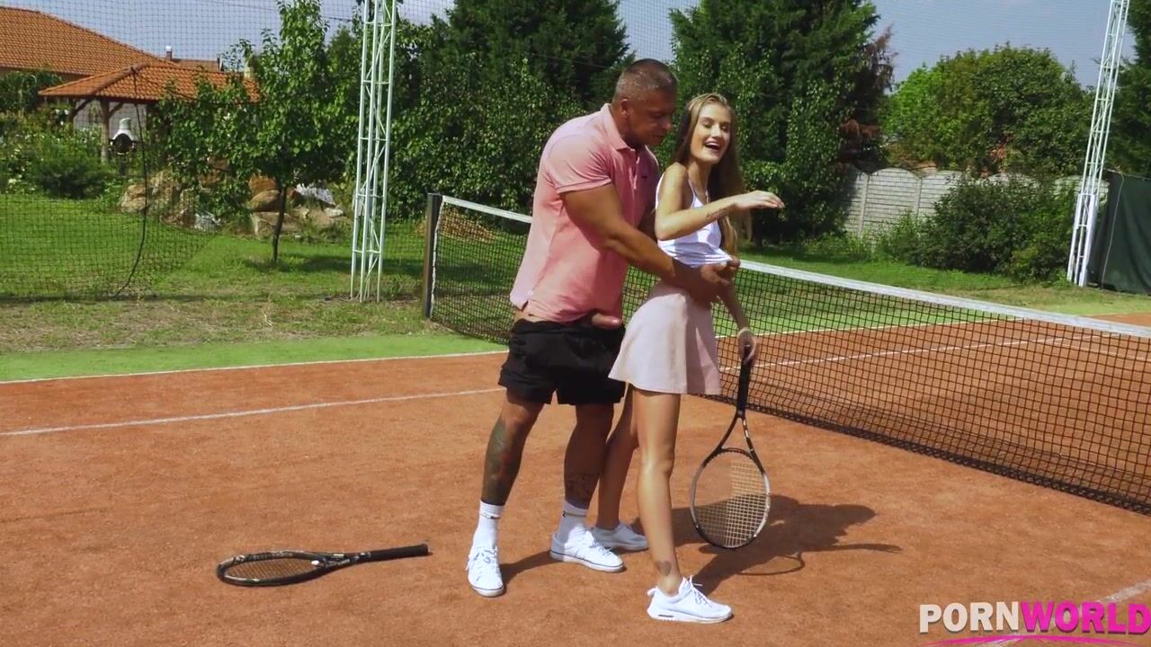 Petite brunette hottie Tiffany Tatum is about to receive her first tennis lesson from Sabby. She notices his big balls and cock inside his pants and bounces her racket off that crotch, smiling and flirting with him, which gives him an instant hard-on. The two start making out and he slides his hands slowly underneath her sexy mini-skirt. The Hungarian college student kneels down and takes that dick into her mouth for a blowjob under the blue skies. Watch her deep throat that rock-hard prick to lube it up for her shaved wet pussy.What a petite and horny teen!He crams her tight pussy with his fat cock and starts banging that long-haired hottie in standing sex position. She screams for more and wanks his cock with her hands which almost makes him cum! This 4K XXX porn masterpiece gives you everything you need and crave! Watch her ride that dong through the tennis net, feeling that rope-like sensation on her perky teen butt cheeks. Tiffany Tatum finishes him off with a blowjob through his tennis racket which leads to gallons of white sperm all over that cum-craving teen's insatiable mouth., 03/29/2019