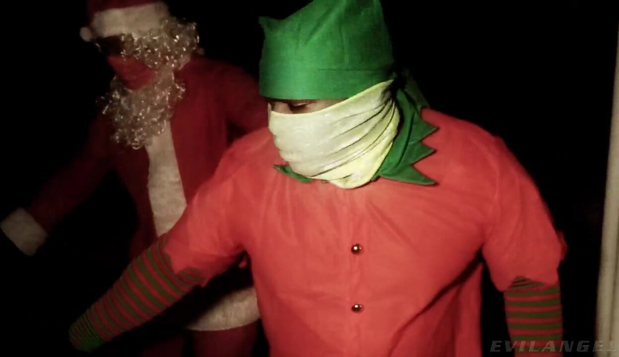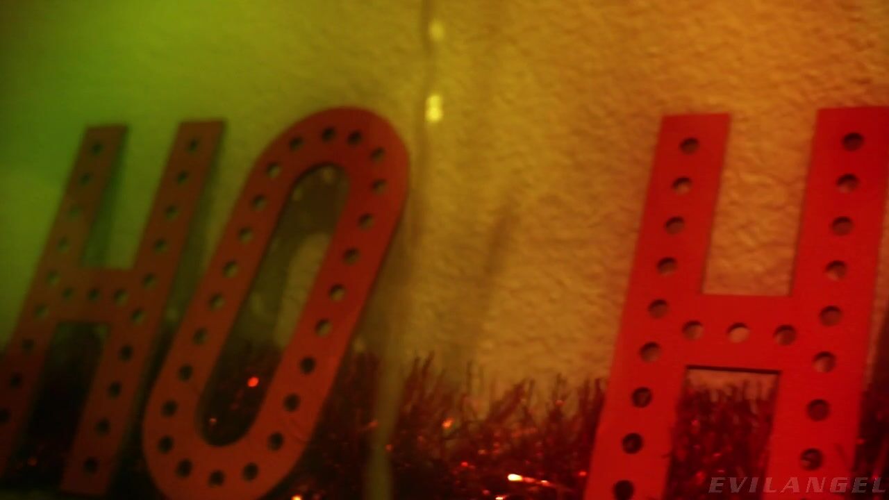 A fireplace crackles as festive decorations signal a holiday special -- 'Black XXXmas'! Adorable in red flannel jammies, Adira Allure helps her bearded grandma (Tommy P) make phallic Christmas cookies. Meanwhile, Black Santa (Nat Turnher) and his little helper (Rico Strong) smoke a blunt, preparing to make holiday visits. 'Grandma' warns that if Adira is still up when Santa comes, he'll put a big, dark log in her pink sock. To the sound of 'Silent Night,' masked Santa and his helper sneak down the chimney. She's on their naughty list (Adira talks dirty throughout), so they strip off her lingerie. The jolly ol' studs fondle her tight, natural body and unwrap her gifts, the big black cocks she really wants! Each vigorously fucks Adira's bald pussy as she gives blowjobs and licks balls. Adira rides each boner, butt and blonde hair bouncing, and she squirts multiple blasts of girl cum! It's a manhandling interracial threesome -- Rico spanks her ass almost as red as Rudolph's nose. As the studs fuck her lithe body in acrobatic positions, more squirt splashes her body, and she loves the taste. Two juicy loads frost her cunt. Ho, ho, ho!