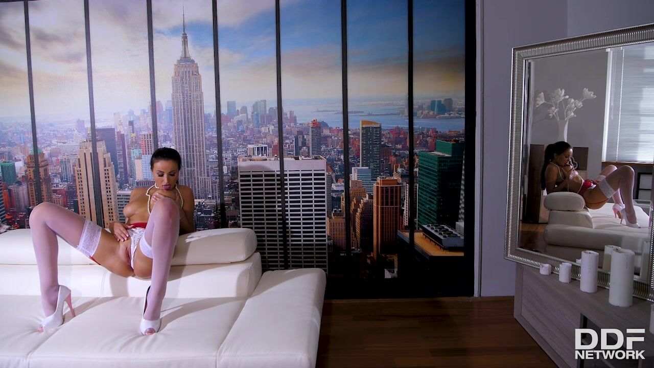 It's a whole lot of fingering fun in today's 1By-Day special video only premium porn scene starring Romanian pornstar Alyssia Kent. The horny honey just can't get enough of her fingers inside her hungry shaved pussy. Shot in crystal clear 4K, watch in close-up detail as the brunette babe gets off in her masturbation solo. Alyssia appears in a short silk robe, long string of pearls decorating her neck for a look of elegance, while the thigh high white stockings peeking out from underneath hints at her naughtiness. She starts undulating her hips and her sensual striptease dance in her livingroom ensues. When her robe finally drops, your jaw will drop just as much too when you see the racy white lingerie and red garter stockings she is wearing underneath.You and your cock will be grateful to see that Alyssia really knows how to please herself, and how to make you imagine if it were you pleasuring her yourself. Go ahead and squeeze her 34C enhanced tits, smack her curvy ass, rub her clit, or finger her pink until she orgasms. Alyssia and your cock will thank you for it!, 08/14/2018