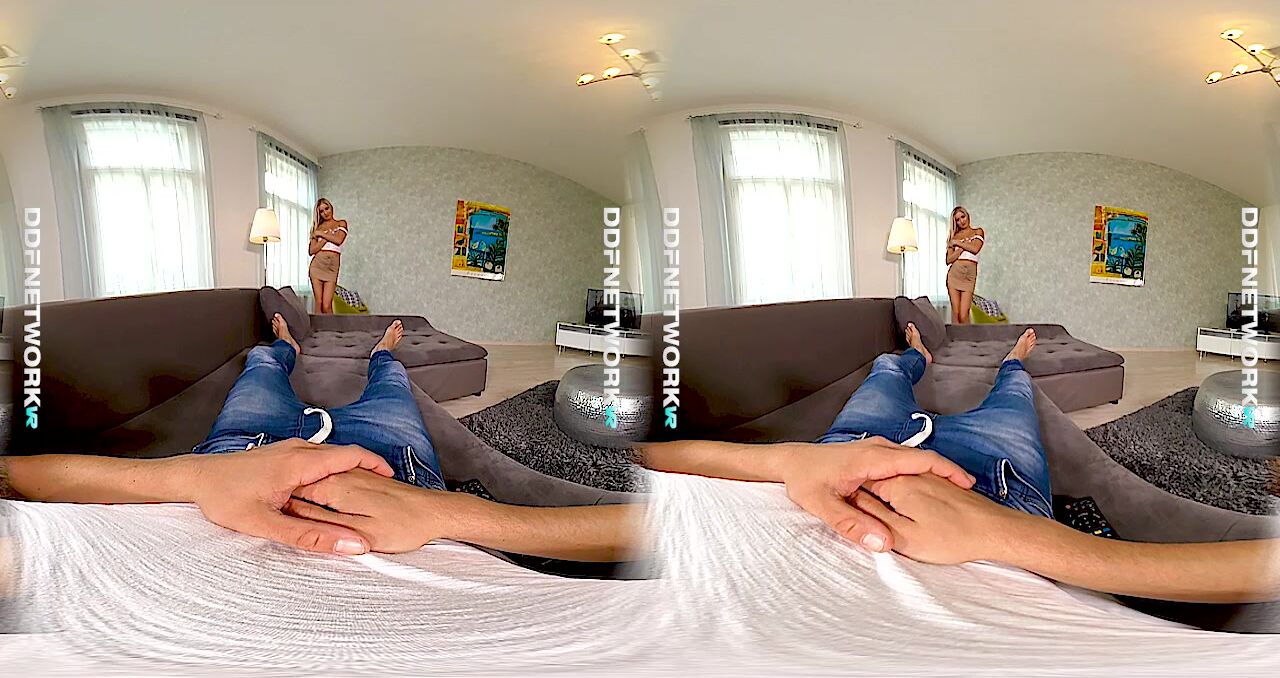 You are at Home all alone when your gorgeous blonde neighbor Cayla Lyons, who just so happens to be a Nymphomaniac rings you up. The all-natural Czech Glamour Babe arrives in a miniskirt and Lingerie, with High heels that accent her long legs and curvy ass. Your cock gives her the high noon salute and she sucks your balls till your toes curl.Yes, thats what your in for in this 180 - 3D - Virtual Reality Sex video brought to you by the minds at DDF Network VR. Suit up in your favorite VR Gear, get plenty of lotion ready and immerse yourself into Cayla's Lustful appetite until she drains your baby batter from the Brain, and keeps you from going insane!, 12/09/2017