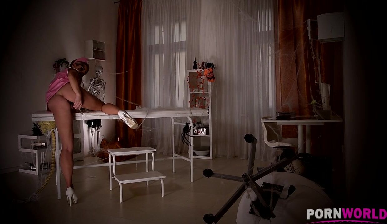 Welcome to our DDF Network Halloween hospital! Black widow nurse Katerina Hartlova decorated her examination room with spiderwebs and other scary Halloween stuff and is now awaiting her clients for a very special trick or treat showdown! Sit back and enjoy todays busty bombshell in another mind-blowing solo masturbation premium porn, just for you!Katerina Hartlova is a blonde babe with green eyes and absolutely breath-taking natural tits. Her 34DD / 75F cans can lead to intense erections, so be aware. The sexy nurse wears a pink latex costume, white lingerie and a pair of high heels. Would you be able to get naked without getting a boner in front of that ever-hungry nympho? Watch her play with a sex toy pump and enjoy that long-haired goddess insert that rod into her shaved, wet pussy. She pokes her big nipples, rubs her clit, and squeezes her massive boobs with both hands before banging her tight twat on the examination table until she reaches her orgasm.XXX nude pics, packed with spooky-sexy Halloween water pump action below! Check it out, hit like, and leave a comment after you washed that jizz off your hands, 10/30/2017