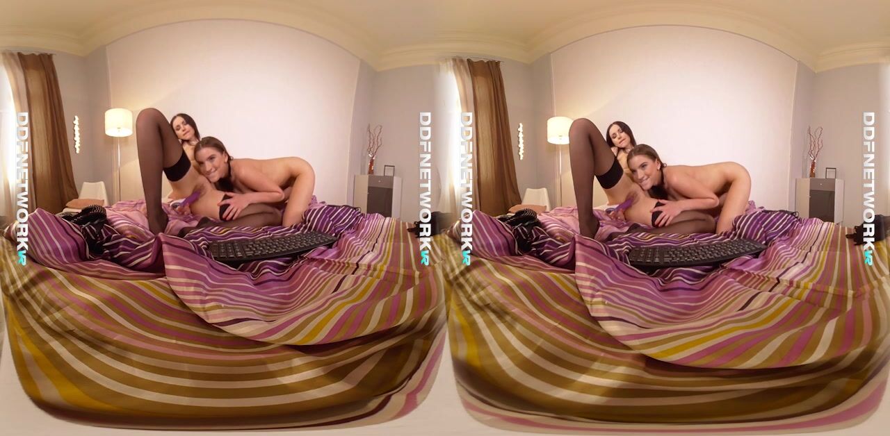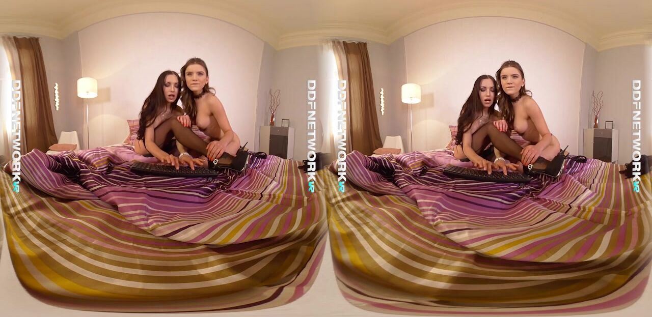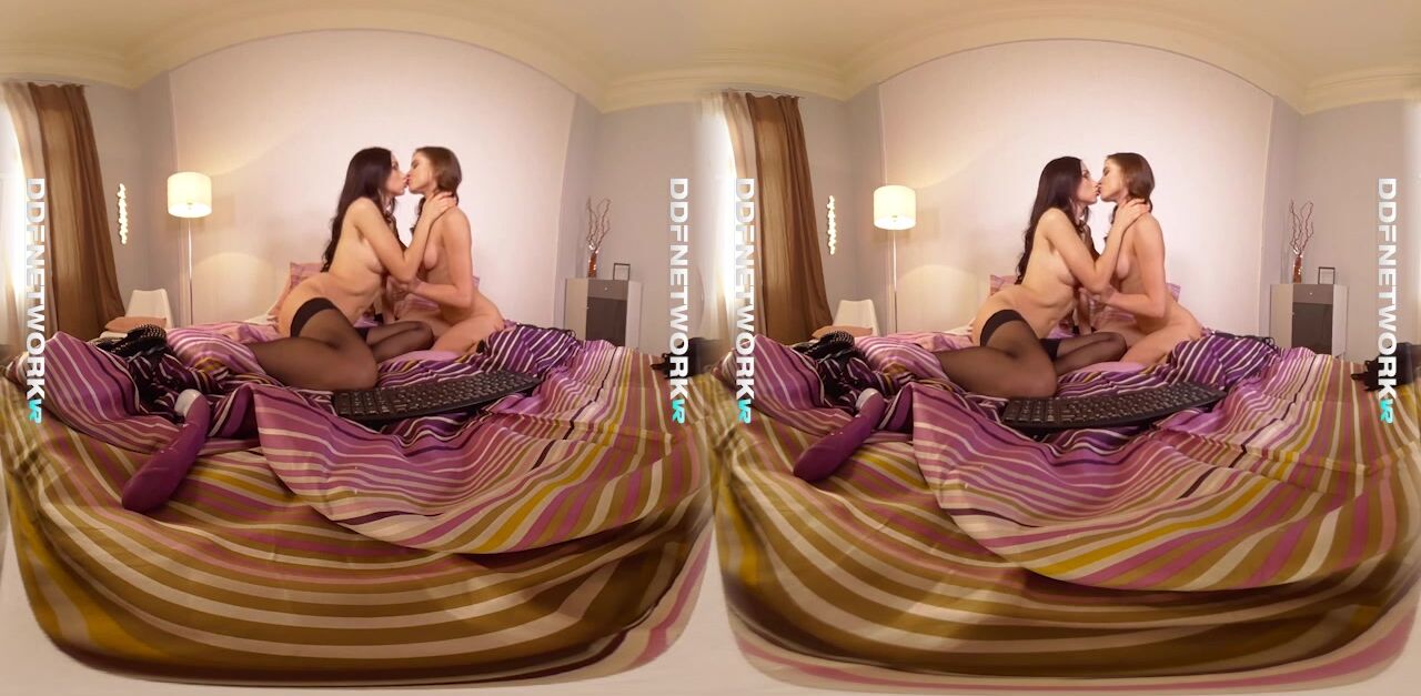 Sit back and grab your hard dick as sexy Russian teens Evelina Darling and Sasha Rose shoot their very own webcam for this lesbian premium porn scene shot in Full HD for the DDF Network. The horny glam chicks are orgasmic as they ease their afternoon boredom with some vibrator and double dong action in the bedroom.Blue-eyed brunette babe Sasha Rose looks stunning in a black lingerie set with thigh high stockings and black heels. Neither her or Evelina - also gorgeous in a black bra and G-string panties - are interested in keeping any pretense that they're your regular girl next door types. The wicked teens waste very little time warming up with sensual titty play and sucking, kissing and licking each other's petite bodies. The girls are on fire with cum inducing pussy play too, snatching on each others pink shaved pussies. Sasha does some face sitting, while Evelina gets into some ass licking and pussy insertion with a vibrator. The girls lick and wet their double dong before fucking each other proper, leaving our cum filled cocks aching for more., 06/24/2017