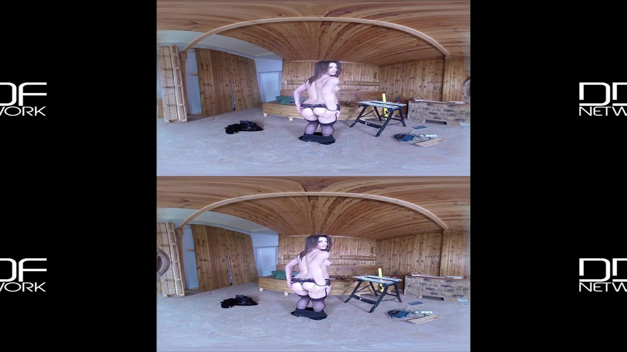 Carpenter Ricky Mancini is working on a piece of wood for the DDF Network sauna when Gabriella Lati walks in and starts complaining about his work. The brunette college student needs to be educated in how to behave properly with a hard working man, so Ricky grabs her by her arms and starts chocking her. She is willing follow his lead and bends forward onto the workbench, so he can tie her up with a rope and start spanking her naked butt cheeks with a yellow wooden ruler. The young babe wears black nylon stockings and high heels, which gives him a massive boner in his jeans. He slides her panties aside and starts licking her shaved pussy while fingering her asshole. Ricky crams Gabriellas deep throat with his big cock and later fucks her hard on that workbench. When she feels his dick deep inside her pussy, her nipples get hard immediately and she cant wait for him to bang her tight asshole doggy style. Todays XX fetish porn heats up when that petite babe rides his large rod with her anus. He humps bonks that asshole until you get to see a Virtual Reality closeup shot of her ass gape before he blows his cum in her mouth!, 05/24/2017