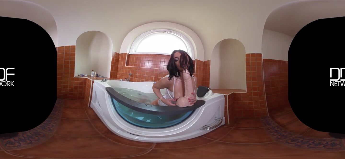 Jenny Sapphire impresses us on today's 1By-Day as we watch her cram her clam with the biggest ever plastic prick. In her steamy solo video we'll get to watch as the beautiful brunette rides her huge dildo with gusto like a champ, proving to us that nothing is off limits or too large for this size queen.She looks demure while she pets herself and poses in her white lingerie in front of the mirror, so it comes as a surprise when we realize that she's chosen the biggest ever instrument to cram into her little slit. Her shaved pussy soon becomes soaking wet and aroused, up to the task of the bathroom action that's about to ensue.Her ideal morning commences when the blue eyed beauty fingers and penetrates her pink while lustfully licking her toy, causing our own johnson's to become big and rock hard! Watch in amazement as the curvy ass'd cutie goes after her gasm and leaves you wondering what she might try next for pussy insertion!, 08/28/2016