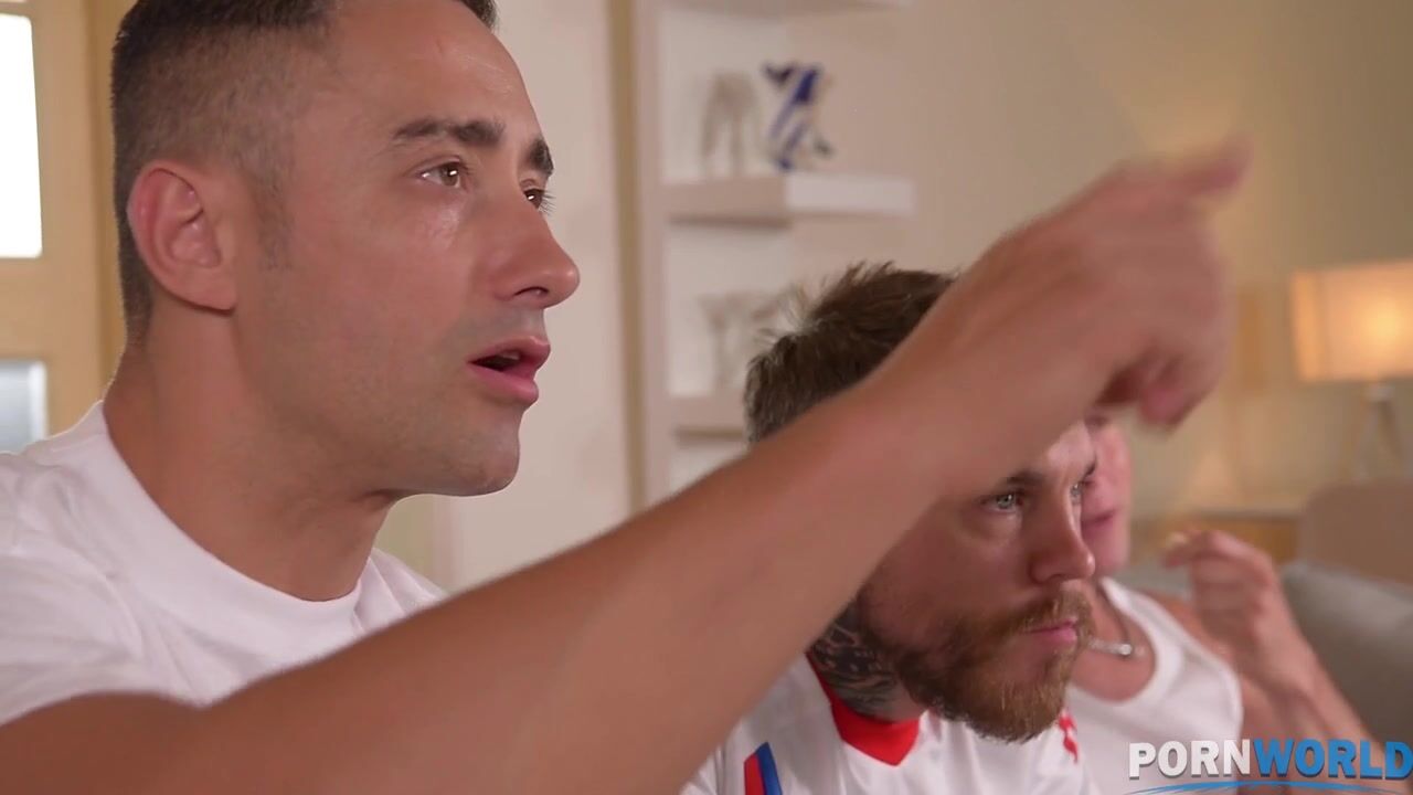 In todays episode of DDF Networks Hands on Hardcore, our beautiful redhead Eva Berger gets banged by three soccer fans during a UEFA 2016 soccer game. When she enters the livingroom with a couple of beers, the three lads Dean van Damme, Choky Ice and Mugur dont even pay attention to this super sexy hottie. Eva has a glorious idea, walks into her bedroom and puts on some seducing nylons, high heels, sheer lingerie, and walks back to the surprised football fans! Within a couple of seconds, UEFA 2016 is history, and she catches their full horny attention! After a solid multidick sucking warmup round, Dean starts stuffing her tight shaved cunny with his hard prick while she give the other two boys a handjob and some further cock sucking. While riding Mugurs enormous boner in reverse cowgirl style, she stuffs her deep throat with Dean prick and receives his cum in her voracious mouth. Its Chokys turn and he starts making her ass gape by banging her butthole and unplugging his dick from her tight anus! After double penetrating the young babe, Mugur shoots his jizz all over her butt crack while she gets a sperm refill from Choky! What a hardcore threesome loving Russian bombshell!, 06/30/2016