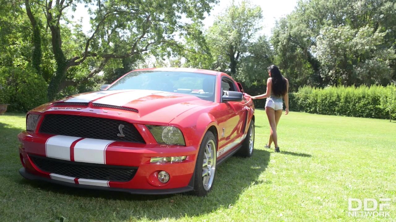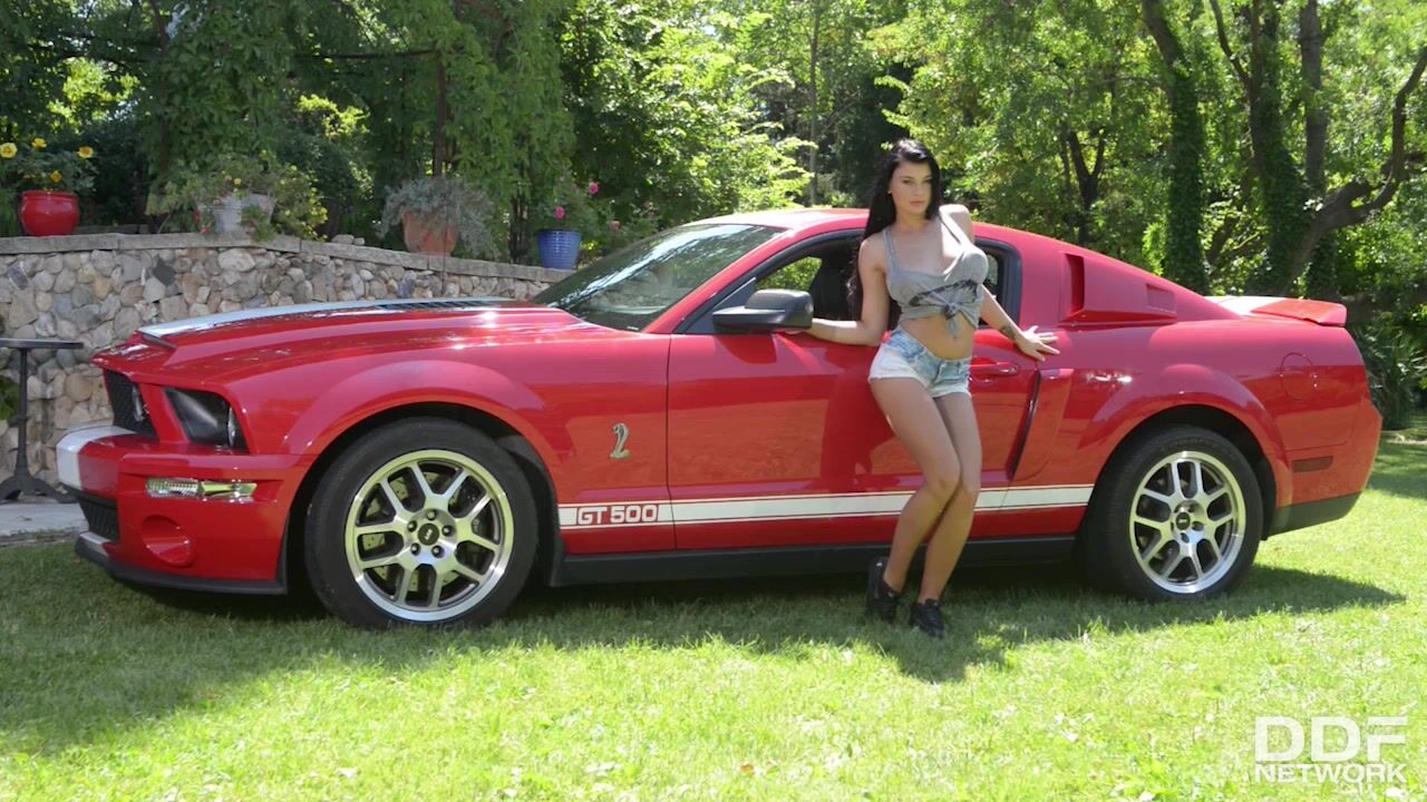 Get ready to get your engines revved up and hot because Lucy Li is going to turn up the torque and turn you on! Our favorite black haired provocative Czech will have you firing off a big cum shot from all cylinders in no time!Lucy appears to be quite turned on by cars as she rubs every inch of her curvy ass against the Mustang giving it the perfect shine. She's also got a rack that would go perfectly on the rooftop or a cock that she shows off by having them fully displaying her big natural tits outside her tied up tee.Squatting down and bouncing a bit in the garden with her legs splayed wide so we can look inside, she gives us the perfect shot of her shaved pussy tucked underneath her barely there booty shorts.This is a solo softcore scene you won't want to miss if you're looking for an excuse for an afternoon stiffy. Her green eyes and pussy petting will leave your tongue out as she takes off., 06/28/2015