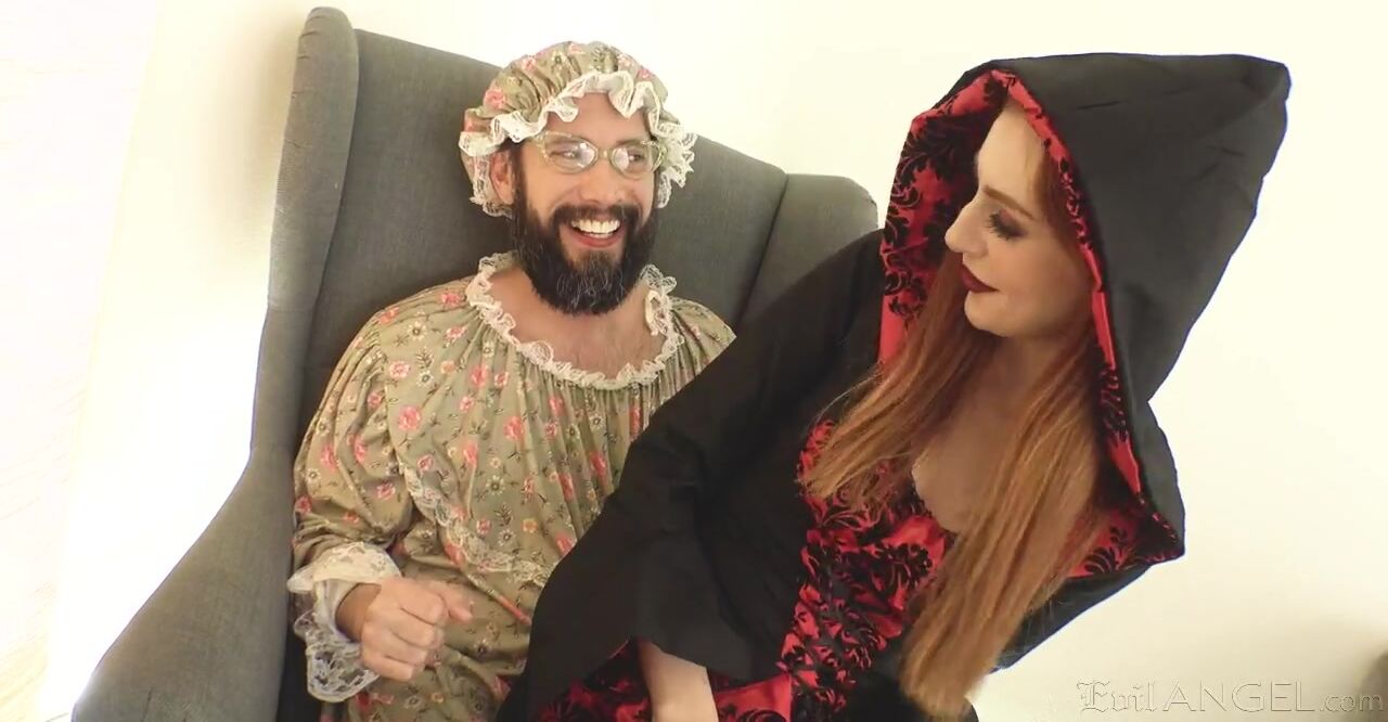 Description: Sassy redhead Maya Kendrick wears a black, hooded cloak to visit pervy 'grandmother' Tommy Pistol. Cute, young Maya sits on Grandma Tommy's lap for a fairy tale, and then they share a freaky, no-holes-barred fuck. Tommy porks her pussy, and Maya pries apart her cunt lips to exhibit her vastly gaping twat! Grandma's backdoor banging stretches the slim girl's sphincter to immense gaping. See intense pounding and hard smacking, plus an ass-to-mouth blowjob and lewd rimming. Finally, Tommy decorates Maya's demented smile with a creamy cum facial.