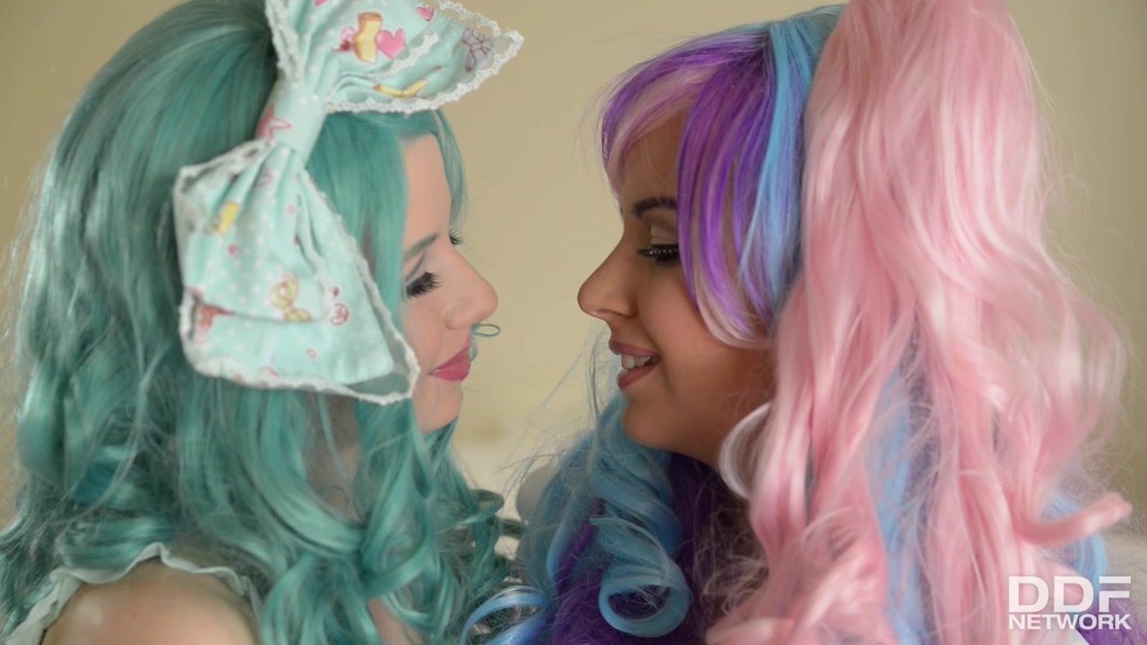 Costume play, or cosplay as its now popularly called, is becoming bigger than ever with conventions and magazines and worldwide publicity. But do you ever wonder what those cosplay cuties do when they come home from a convention where they parade their latest outfits for their adoring fans? Let our DDF cameras show you in this new fetish XXX video! Olivia Grace, from Belarus and in the green turquoise wig, and Onyx Viper from Hungary in the pinkish topping, are in their Gothic cutie dresses, in the style which first originated in Japan. They look so darling, dont they! But under their peep toe high heels and fishnet tights they have pussies ready for pleasure, and toes ready for sucking! So watch our cosplay cuties as they lick their equally matched size 6 feetsies through the fishnets, sniff their shoes, rub their cunnies with their soles, and push apart their pussies with their toes. As the tights come down, we see the girls indulge their foot fetish desires in foot 69 positions, rubbing their clams as they suck on their own big toes, and showing off more and more of themselves to us even as they move their colorfully polished toes in front of us. Youll feel like youre kneeling right there on the carpet in front of these kinky sweeties, and youll know they want you jacking like crazy at their wild foot worship tease show!, 04/27/2015