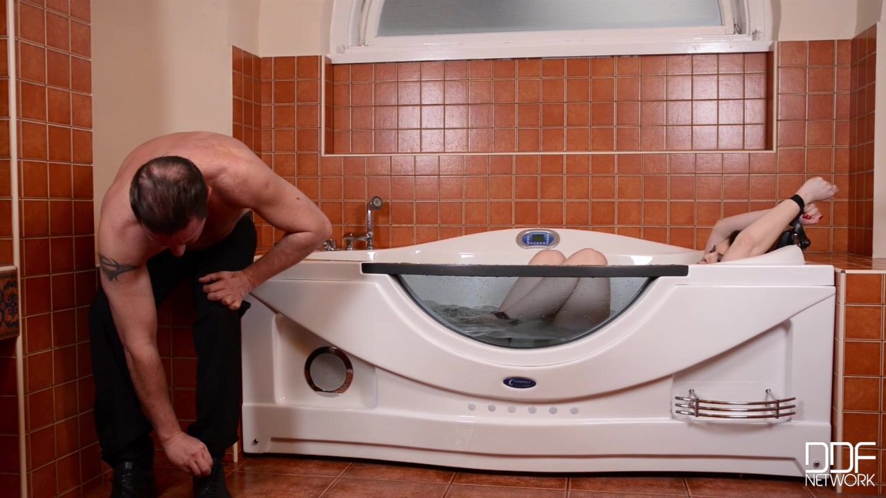 In todays extreme sex roleplay captured in a Full HD BDSM video, David Perry dominates Lucia Love in the bathtub. Shes already bound and gagged when he undresses to join her. Showing his complete command, he sprays her in the face with the shower attachment, twists her nipples, and presses the soles of his feet against her nose and mouth while he leans back in the water to read the newspaper. After awhile he decides she deserves more intense treatment, so he shoves her face under the water for a brief drenching. Then, turning her around, he uses her ass as his stool as he goes back to reading the paper. When she gets a little feisty, he sprays her with the water again while pressing his foot against the back of her head. When that still doesnt seem to quell her rebellious spirit, he gives her a hard spanking with his hand and then shoves her head under the water again. But this is just a warm-up for what climaxes the scene: fisting. He crams his fingers and then most of his hand into her asshole before dunking her head under the water with the cruel strength of his feet. But her trials of total submission to her masters whims are not over; youll see what happens next in Part 2., 03/23/2015