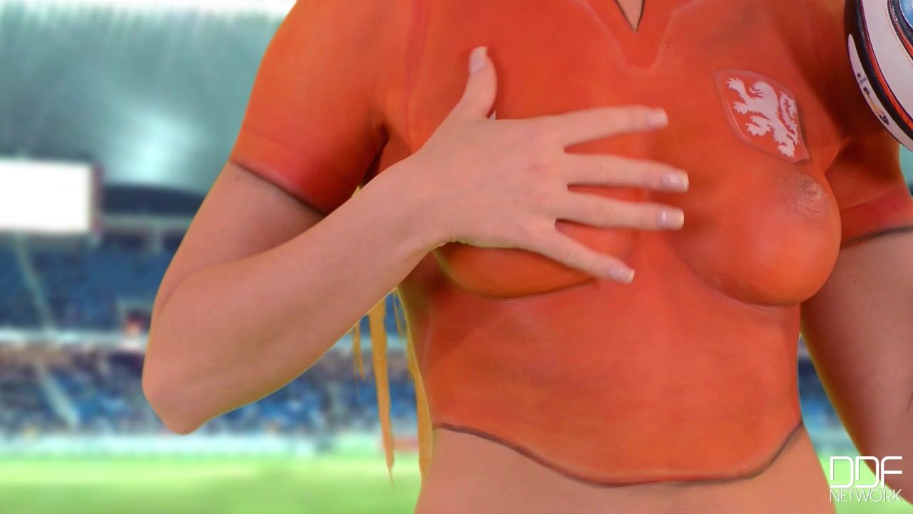 Kiara Lords is in great form and ready to score her Goal as she cheers for the Netherlands! Hungarian by birth, but the blonde haired, blue eyed vixen with tight curves in all the right places could easily be part of the Dutch community. Watching her of course is going to make you want to score your own Goal, and if you've seen her in action on DDF films, you know thats one starlet that will rock your cock all night long!, 07/11/2014