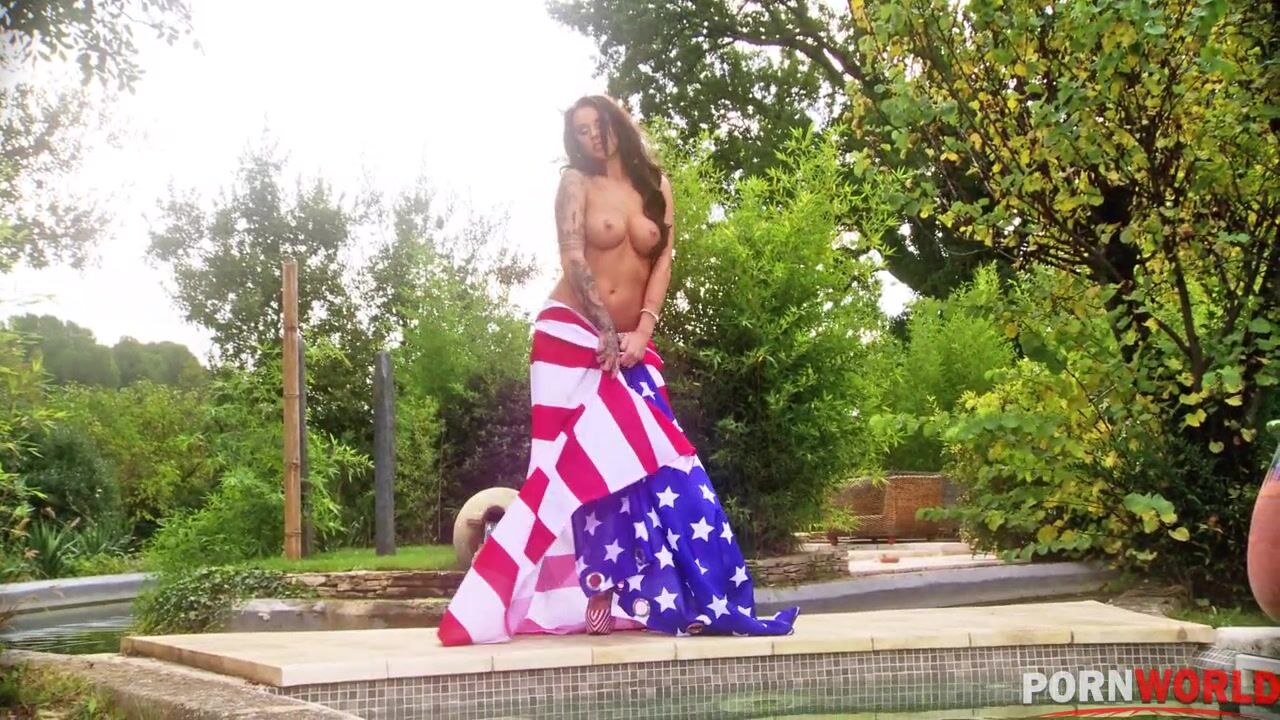 DDF Network wants to help commemorate Memorial Day with the buxom British babe Daniela in a Full HD softcore solo tribute that will definitely leave you soft after you've rubbed one, two, three, or more out to the sight of the tattooed vixen. The brunette beauty shows her support of the red, white, and blue posing with the American flag wrapped around her bikini clad athletic fit-to-fuck body, and the flag colors emblazoned on her high heels below. Now if that isn't a show of support, we don't know what is!When the gorgeous glamour pornstar does a little striptease to reveal fully her 34DD-28-38 voluptuous curves, she's really working her sensual magic to help your stiffies give a standing salute. Enjoy watching and drooling over her sexy tattooed naked body as she saunters around and lounges poolside outdoors under the summer sun.Don't miss this wank worthy Memorial Day premium porn scene!, 07/03/2014