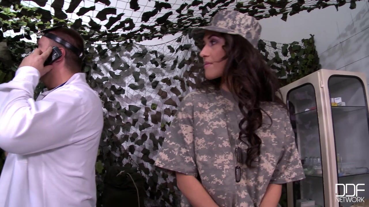 Female soldier Jess West is in the middle of getting examined by the doctor in the infirmary at Fort DDF when suddenly the medic gets a call that sends him on an urgent errand. Left to her own devices, the sexy brunette warrior notices a cock sticking out of the camouflage on one side of the office! Quicker than you can say, Kneel at attention! Private Jess is squatting and sucking the protruding prick, and opening her fatigues so her curvy body can enjoy a little sensual freedom as she gives the big dick her best cock sucking and deepthroat. It doesnt take too long with her frenzied mouthwork for the meat to bust its nut all over her ready tongue in these sexy blowjob pics, a load which drips down onto the front of her fatigues. Looks like she might earn herself some K.P. duty with that dirtied uniform, but Private West doesnt seem to mind!, 06/05/2014