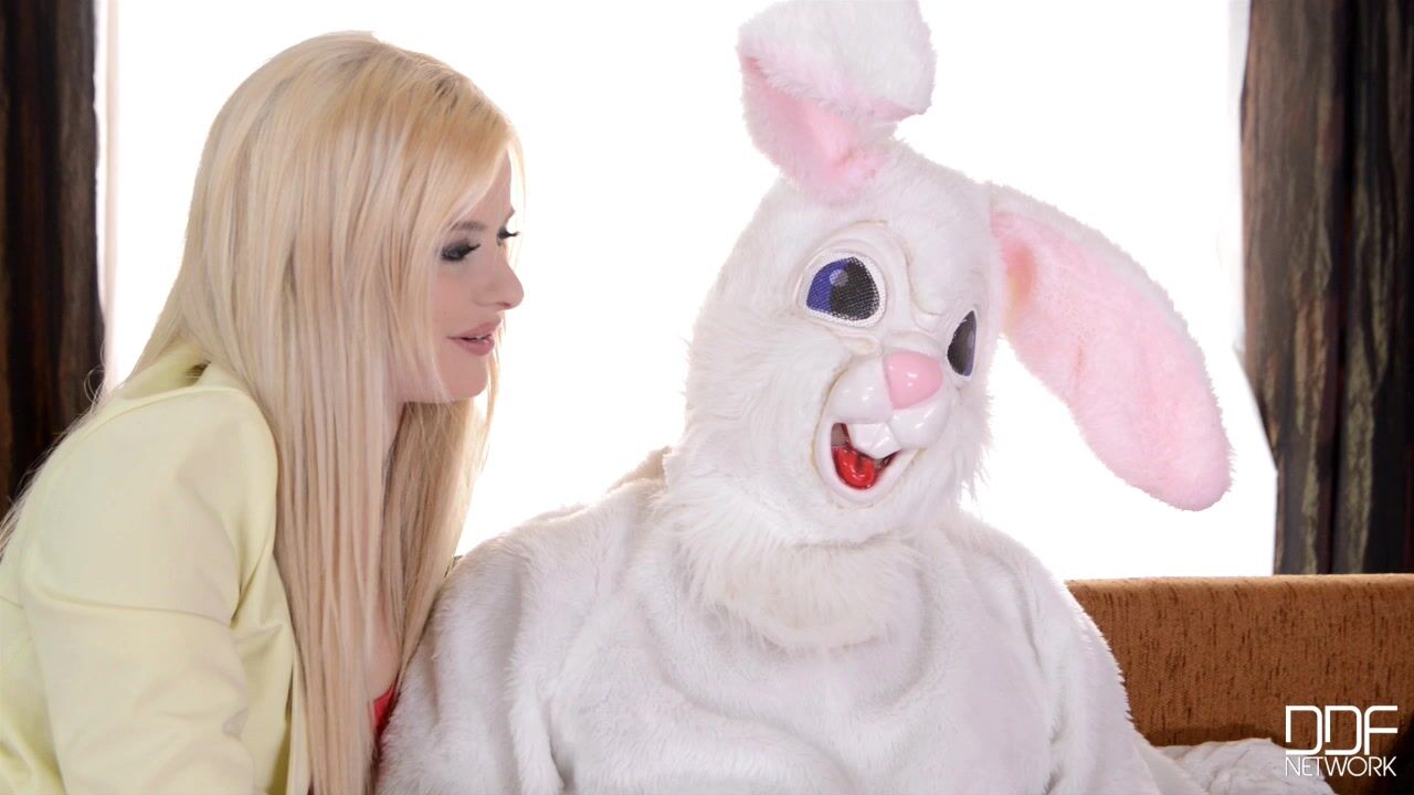 How does Charlyse Bella spend part of her Easter holiday? By paying a visit to her roleplaying friend Choky Ice, who wants to show her his new Easter bunny outfit, aka Mr. Rabbit! Ah, what a cuddly fellow, Charlyse thinks, as she tickles him on his nose. Of course, even though hes dressed like a mythical creature, Choky is still Choky, and hes got that rigid tool in his pants that needs regular satisfaction. Charlyse quickly gets with Mr. Rabbits program and gives that big dick the cock sucking it needs. There are some startling poses in these sexy blowjob pics where Mr. Rabbit stands over a kneeling and hard-sucking Charlyse that will truly linger in your memory bank! The more she blows Mr. Rabbit, the more she takes off her clothes, until by the time he deposits his load on the top of her blond hair (!), Miss Bella is completely naked! And clearly having the most fun time of her oral sex career!, 04/20/2014