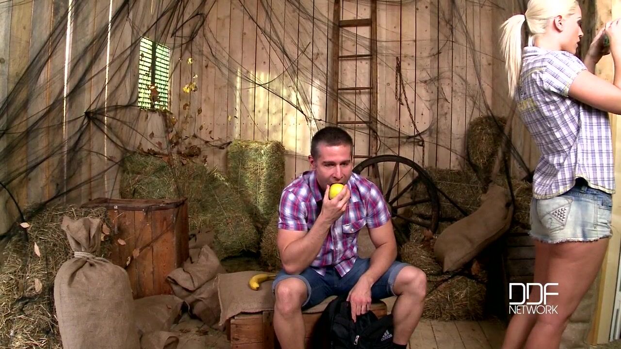 Blanche Bradburry and Totti are two hikers who find themselves slightly lost, so they seek the shelter of an empty barn while they have a snack and check their maps. But of course its a short leap from Blanche eating a real banana to having her suck Tottis meat banana. After she opens her cute plaid blouse and blue denim short-shorts, off come her turquoise bra and panties as they peel aside their clothes for lots of cunny licking, cock sucking, and fuck time fun in all the positions any horny hikers could require. Blanche looks especially good in this hardcore XXX video as she takes it from behind standing up, kneeling on a blanket for doggie style, squatting on Totti in the cowgirl position, or finally accommodating his sausage in the spoon position and receiving his cream on her nicely little trimmed patch of pubic hair., 12/11/2013