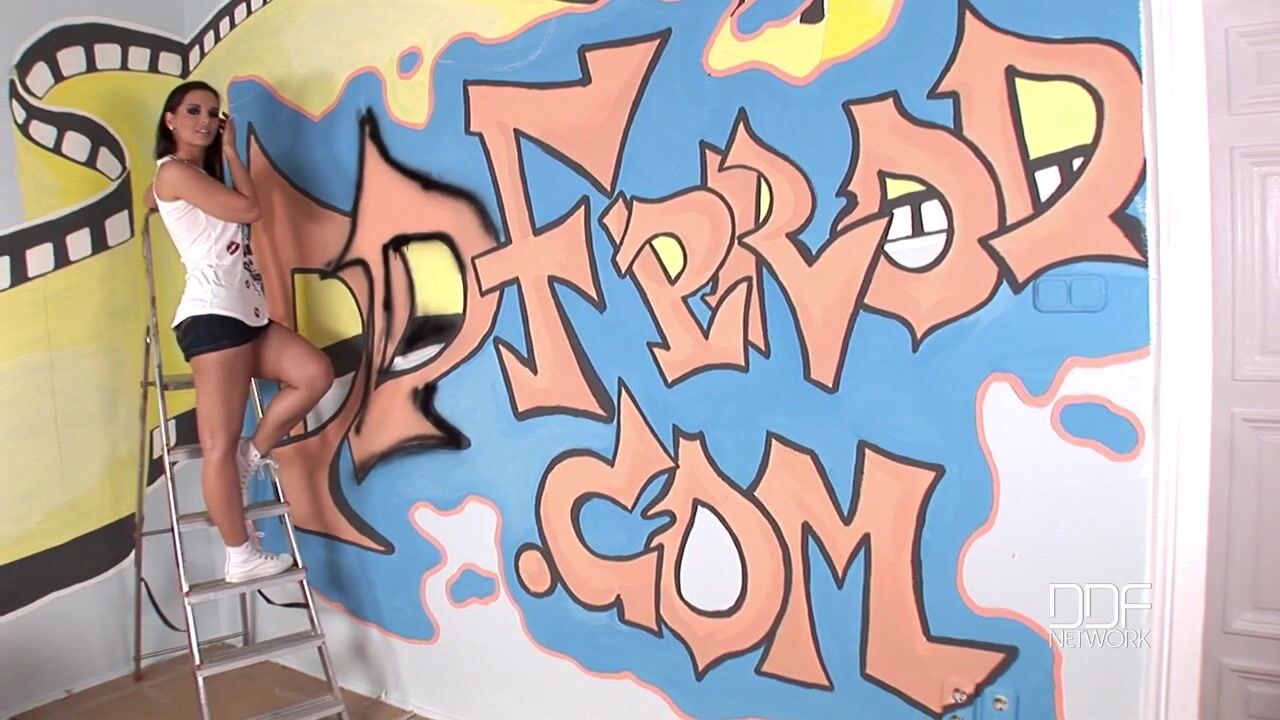 You may not know that Eve Angel is not only one of the top Hungarian pornstars famous for her big booty, but she also happens to do graffiti on the side for fun. And of course if it's Eve Angel, you know her fun always consists of sex of any kind and today she puts on quite a solo masturbation show looking like a gangsta girl in her skull print tank, mini denim skirt, and high top sneakers. She first teases with peeks at her derriere barely covered by her white thong before taking them off so she can finger her neatly trimmed pussy. Eve shows us in juicy closeup just how wet and ready she is for the glass dildo that comes next. Graffiti never looked so good!, 08/29/2013