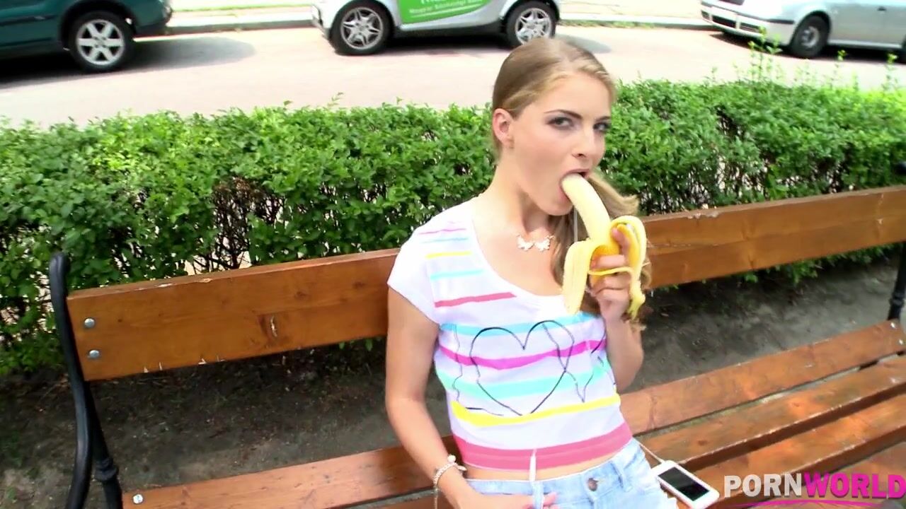 Men would kill to be in Mugur's position today because he gets picked up by the very hot and horny Cayenne Klein, who he can't help but notice simulating giving a blowjob to a banana in public. The Hungarian blonde cutie invites Mugur over to her place to fulfill her lustful tight pussy, and he's more than happy to oblige, first licking her trimmed twat and then cramming his cock into her very wet slit. Cayenne just can't get enough and she has him ramming her nonstop from every angle she can get him. Check out the hot babe's pics for some great shots of Cayenee pulling apart her ass cheeks so you can look deep into her puckered hole as she rides Mugur in reverse cowgirl., 06/26/2013