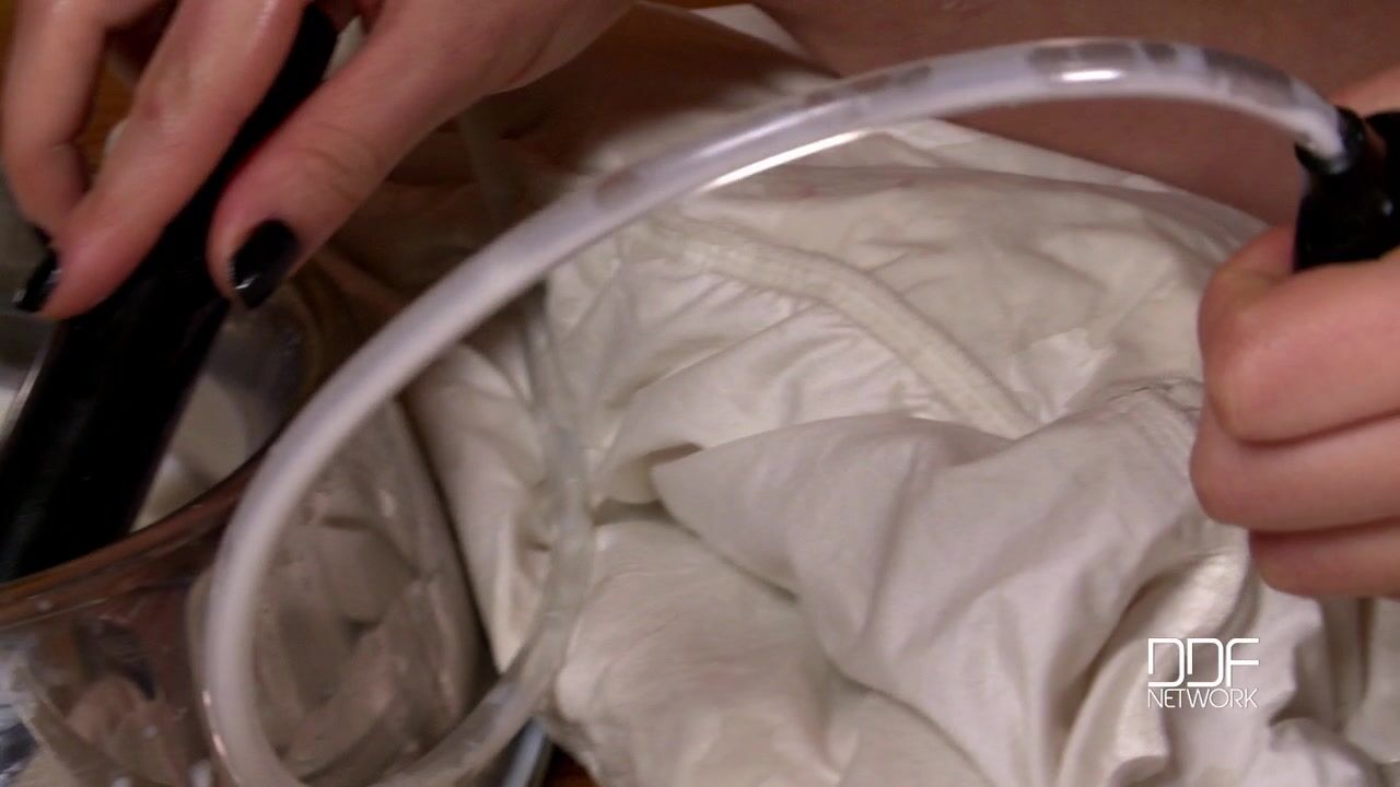 One of the problems when you have a pet is making sure that your animal can be content and even entertain itself when youre at work. A dog or a cat should be able to stay in your home for long periods of time without mischief. Similarly, when you have a kittenish slavegirl like the Russian beauty Henessy in your house, she should be able to lay on the floor of your sauna in her little black cat mask, crotchless fishnet pantyhose, and strappy black platform shoes, and be able to pass her time in a productive way while youre out in the proverbial jungle making the money that makes it possible for you to maintain a full-time slavegirl in the first place! And so you provide Henessy with items that make her hours alone more pleasurable even while she is bound by her neck to a post with a red leash. You know its not enough for her to simply lap at a bowl of milk like a feline kitten. Being a human kitten, she wants to do more with the milk; and after fingering her asshole and caressing her tits, she gives herself a milk enema with a black plastic tool that she can fill up to squirt the liquid into her bottom. Oh, the hours just fly by for this kitty as her rectum is filled with the healthful white dairy product, which she then sprays out of her ass into a tray--and everything is captured meticulously by our DDF cameras in all its wet detail. Youll see every last drop go spurt, drip and dribble in this wild new set of pix and Full HD video!, 02/25/2013