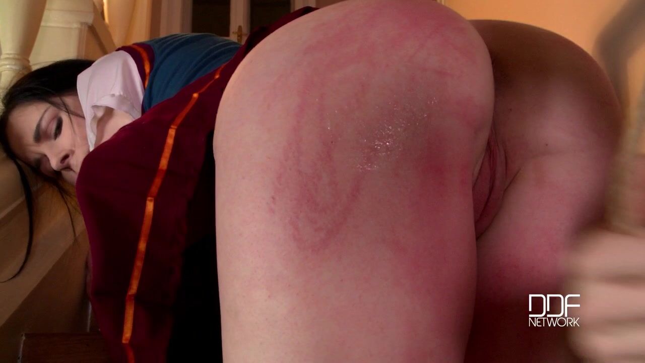 Those who transgress the rules must be ready to accept correction for their breaches of protocol. Thus it has always been, and always shall be so that civilization may be maintained in spite of the restless nature of some individuals. And to demonstrate this worthy theme, we return to bad student Amber Nevada who, having peed all over herself in Part 1 while waiting for dormitory housemistress Amarna Miller to come downstairs to chastise her further, is now about to receive her discipline. In her gray pencil skirt, heels, stockings, and simple white blouse, Miss Miller looks formidable indeed, and the yellow T-square she brandishes as a spanking implement metes out painful punishment indeed on Ambers naughty behind. Once again the shameless girl urinates on herself, further proof (if proof need there be!) that young females should not indulge themselves with beer! Miss Miller spits into the mouth of her student, to demonstrate her contempt for Ambers behavior. She then spanks her more furiously with the T-square, making Ambers cheeks jiggle. Then she has Amber lick her pussy, since if the girl is not going to be a good student academically, perhaps she could be a good sex slave to a housemistress erotically! Miss Miller sits on Ambers face and rubs her pussy with the high heel of her black oxford. Then she leaves the student alone, to contemplate the lesson she has been given--and hopefully to take it to heart!, 02/07/2013