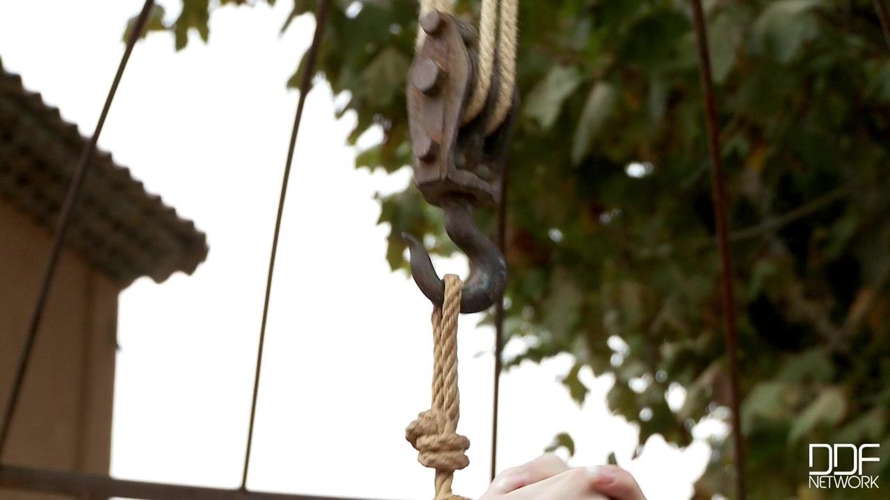 Whatever Leila did to bring on her punishment--Mistress Tracy will not let her keep on doing it! Discipline is called for, outdoors in the garden with a naked and wrist-bound Leila being led to a stone table where her arms are hoisted above her. She does not look happy. Her mistress tweaks her nipples, squeezes her face, and lets her know that her transgressions will not be tolerated! The booted blonde domme pulls Leilas arms up so that the redhead has to stand on the table. Then its time for a little bottom-warming with a carpet beater. Leila cant stand it--was her offense really that serious? Apparently so, because then Mistress Tracy pulls her hair and has her kneel on the stone table while continuing to smack her pale white bottom with the carpet beater. But whats this? says Tracy, sliding her fingers into the slaves snatch. Youre getting AROUSED by your chastisement? Your pussy is wet...well then, my girl, you must be satisfied and pronto! We cant let our slave ache for a climax, can we? That would be CRUEL, ha-ha! Tracy slides a big black dildo into Leilas mouth for lubrication. Thats it...make it moist for your slave hole! Tracy laughs, rubbing it along the redheads shameless quim. The ropes are adjusted so that Leilas legs are spread for maximum openness and embarrassment. But then Mistress Tracy gets a better idea...she WONT stuff the toy into Leila, so the girl will be frustrated and hungering for relief! Instead she just teases her slaves cunny lips with the toy...and some well-aimed SPIT on the girls twat! That will teach her not to disobey anymore...and then Mistress Tracy leaves poor Leila bound and naked on the table, exposed to any leering passersby!! The bad must be punished...and lessons must be learned!, 11/21/2012