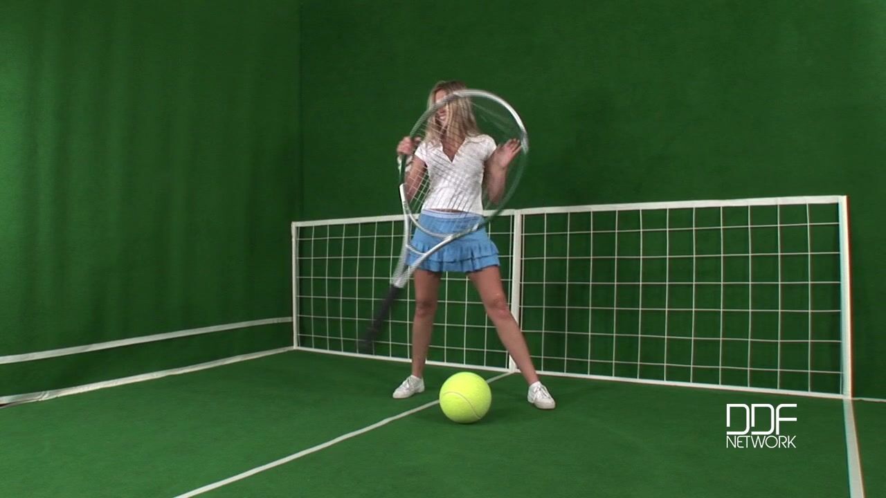 Anna Kournikova, watch out because I'm going to show the world another way to play tennis! There's going to be a whole new set of fans after I'm through this match between me and my jumbo sized racket! I know how much you all love to see me get into uniforms, so today I'm in a cute tennis outfit, and of course it wouldn't be complete without cotton panties. You wont want to miss those sneak peeks! I also love any sport that gets me hot and sweaty, and if there are rackets or balls involved even better! Well today with a jumbo racket and a jumbo ball, you know Im bound to get naughty thoughts, and it doesnt take long before I start running my hands along my body, playing with my tits, and fingering my pussy. I play with myself and the racket with the finesse of a tennis pro! You won't want to miss my pussy games!, 09/14/2012