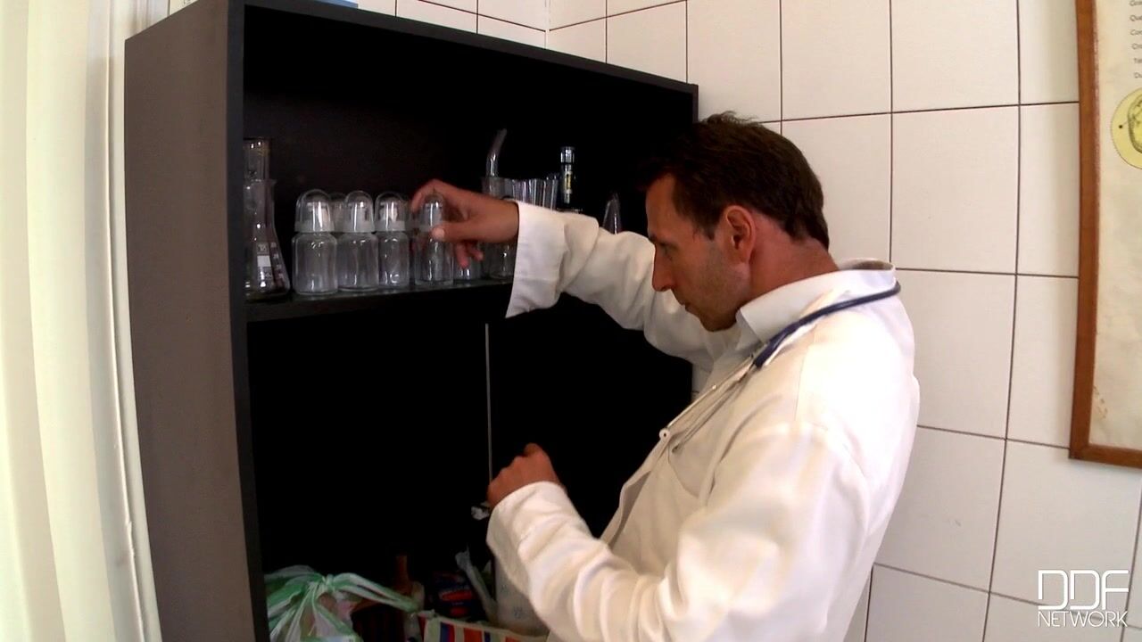 Description: Kathia Nobili and Nick Lang enact the roles of patient and doctor in today’s foray into the bizarre. When Kathia shows up at Dr. Lang’s clinic for a test, she doesn’t realize he’s switched from traditional medicine to PVC therapy...yes, that’s right, he believes instead of the usual methods of healing, that dressing in tight PVC clothing will help his female patients back to health! Maybe the pressure of paying off his student loans has finally sent the doc over the edge? Because he’s clearly gone out of his mind...and Kathia has to deal with his peculiar behavior! She didn’t see him when he was alone, sniffing stockings...but she sees him now as he insists she wear the PVC garments. When she says she’d rather not, he decrees a spanking is the only alternative therapy that he could prescribe. Down comes her skirt and she is bent over his examining table for a thorough bottom warming with his hand. Her cheeks are blushing red with his palm prints. Taking off her panties completely, he lays her across the table nude and really gives her a spanking to remember, her seat meat wobbling with each resounding smack. Then she sees the wisdom of putting on the PVC duds. First the garter belt, then the black PVC stockings, then the red waist-cincher...he squeezes her butt as it juts out over the stockings, and then uses his stethoscope to check her responses. But what will come next with this demented medico? He has Kathia kneel submissively on the step stool while he temporarily leaves the room. Be here for the next installment to find out what he does when he returns!, 09/07/2012