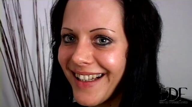 When Aglaya came in for her casting, the first thing we noticed were her beautiful green eyes, eyes that mesmerize and almost get you in a state of trance. With her luxurious long black hair, tattoos, and piercings, you might wonder if she might be casting a spell on you! Well, you wont be able to take your eyes off of this Hungarian hottie as she flashes her small perky tits, removes her jeans to reveal a sexy black thong, and peels off knee high boots that make you drool. Bending over the top of the couch in doggy, she slides her panties down to display her ass-ets from behind. Then sitting back, she rubs her breasts with one hand, while the other reaches down to her trimmed pussy , and with her artfully manicured nails, she opens her pink lips wide for a closer than close close-up that you wont want to miss!, 07/22/2012