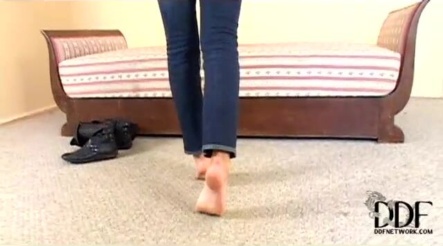Teen hottster Hannah Hunter comes in to the DDF studios to show us those lean and mean lady walkers she's sportin on her fantastic physique! No stranger to our site, but the first tim eher casting set has been revealed. She's a tall, cool drink of refreshing lady love that's ready for the hunt, and there is no one who can escape the grasp of her beauty.A leg casting is the order of the day, and she strips away her black leather boots and jeans with complete grace to get us in the right mood, straight away. Keen closeups of her 10 little twinklers reveal some very suckable toes, with a little tattoo treat to push your cock to super stiffening heights. She continues to reveal her extremely trim, tanned physique as she lays back on the bed and teases us with her long legs. Her perfect pussy peaks from behind the valley of her thighs to wink at us, and send messages straight to our groin. Messages of complete bliss as we have no other choice but to finish ourselves off in a hurry. A display of her flexibility wraps things up as she tastes her terrific toes, solidifying her spot as one of the hottest foot fetish babes around!, 05/22/2012