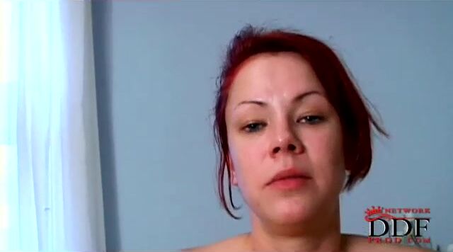It's not often that we get ourselves a gorgeous German babe here at DDF, and an even a rarer case that she's a redhead with 34D bazookas. Welcome Stefania as she poses for our lens and works her way into the hot babe ranks of DDF at a sex video casting!At first glance Stefania looks pretty shy and homely, but once she gets that firebird into gear and starts shedding her clothing, we see a body built for burning rubber underneath! The white chair that she pops up onto and gives us both a spread eagle shot of her neatly trimmed pie, and a doggy style view of that booty built for bouncing beef into. Makes me want to go out and buy one of those white chairs! Actually it makes me want to jerk off all over the place. I'm thinking that's a sign that Stefania is going to be back! Can't wait., 12/11/2011