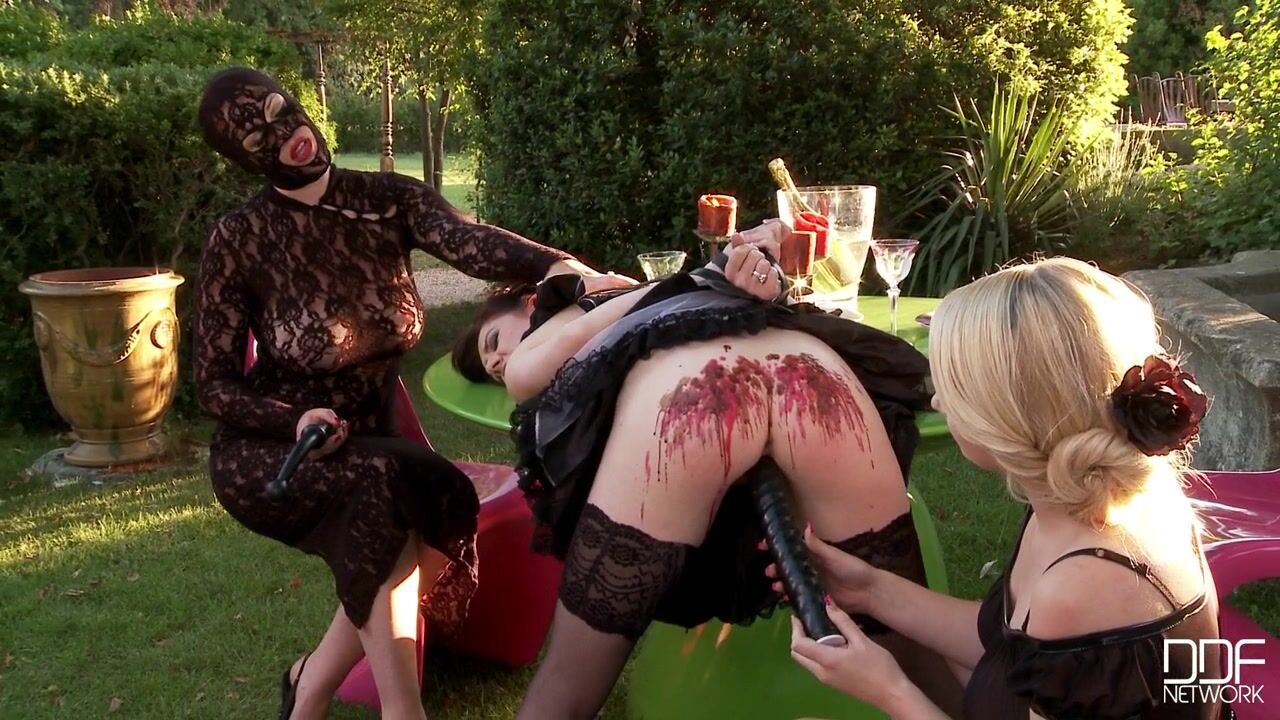 Clumsy maid Samantha Bentley soon learns what comes next from her furious mistresses in our continuation of the scenario from last Thursday 7/5/12! Immobilized by a spreader bar at her ankles, Samantha is held down by blonde Lady Tegan Jane Slapwell and receives hot wax treatment on her tender buttocks from the cruel hand of Dame Paige Birchbottom! The wax leaves an awful mess on her butt, even as Lady Tegan smiles in deliciously evil satisfaction at her underlings plight. Then Samantha learns the purpose of the sex toys she was bringing in on her tray in Part 1: they are for HER!! Dame Paige crams one dildo into her mouth, gagging her and getting the drool dripping, even as Lady Tegan stuffs a black dong into her snatch. The correction relentlessly continues with Samanthas uniform stripped down from her tender titties and vulnerable pussy. Samanthas eyes show her dismay as Lady Tegan and Dame Paige pull on her nipples, just before Paige blows smoke into Samanthas mouth! The poor maid gags, not accustomed to tobacco, and she spits up saliva as her state becomes ever more pitiful. Then its time for dildo training in her mouth, as Lady Tegan inserts her black dong into Samanthas lips to induce even more suffering. She leans over with the drool sliding out of her mouth as Dame Paige holds her hair tightly in her fist. Then its time for Dame Paige to do the oral dildo training, as Samanthas eyes fill with anxiety as her training ruthlessly continues. Can things get even more intense? Be here for Part 3 to find out!, 07/11/2012