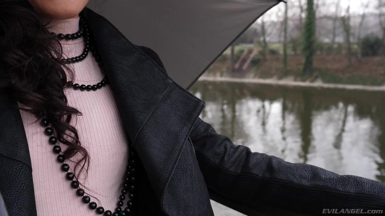 Eveline Dellai flounces through rainy Prague wearing sheer stockings and a sexy Goth ensemble. Hungry for anal fun, she visits well-hung Kristof Cale's flat. He lifts her ruffled skirt to give Eveline's fine ass a rim job. Kristof stuffs his big dick into her tight pussy. He slides his throbbing boner up her soft asshole, sodomizing the stylish young lady with passion. Eveline gives him a loving, ass-to-mouth blowjob. She rides his pole in two holes, alternating pussy and asshole! Kristof cums in her open mouth.