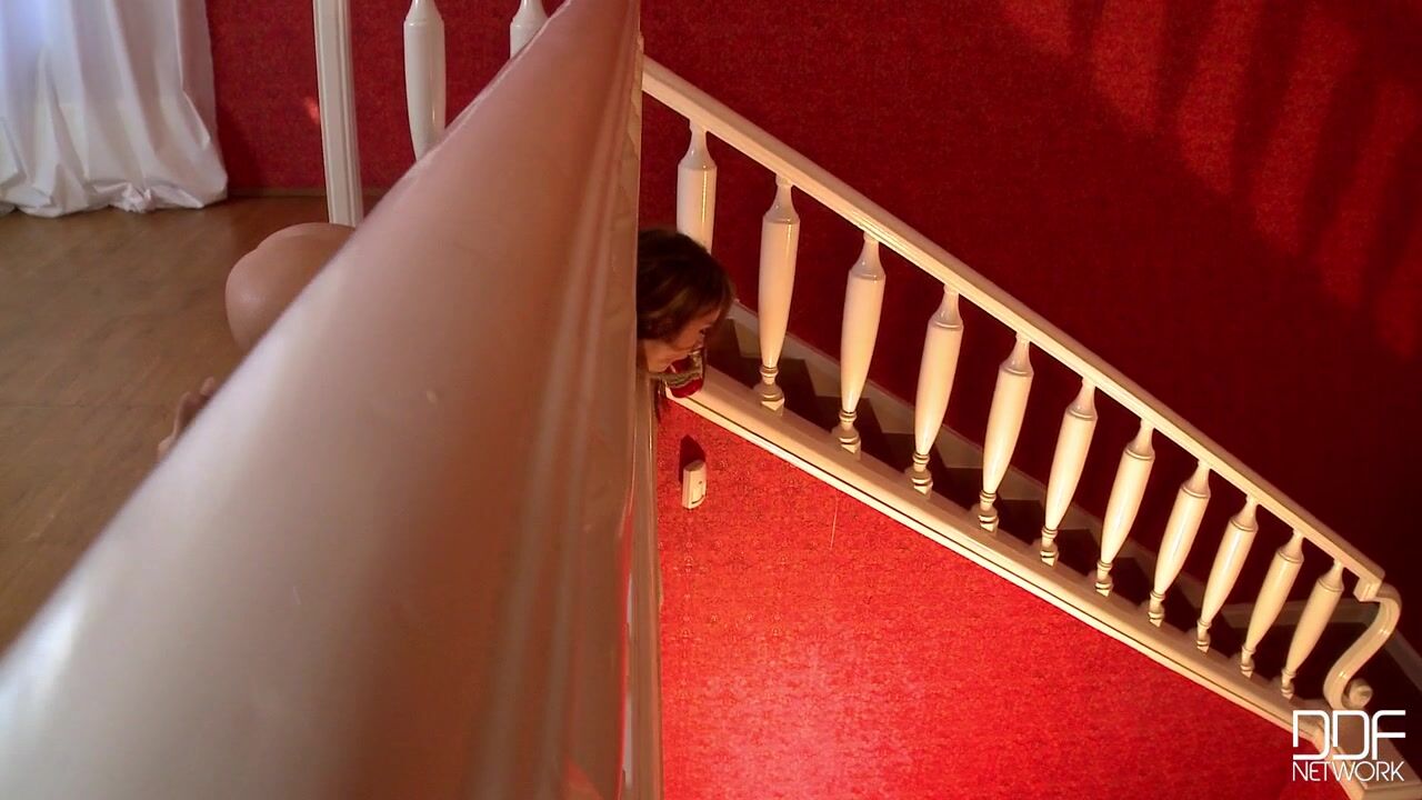 Leyla Black continues to be naughty, so her unseen master continues to punish her! As in the first part of her punishment last week, he shows ingenuity in making her uncomfortable. Bound to the staircase, her thighs securely wide open, her wrists fastened to the railing, poor Leyla knows that at any moment a guest may come through her masters house and look up to see her displayed with such humiliating, restrictive nudity. But complaining only makes her situation worse, as a dildo is crammed into her mouth to silence her protests. She certainly hopes nobody sees her THIS way! If word got around, everybody would laugh at her in the neighborhood, knowing that she disobeyed her master and was an unappreciative little dildo-sucking bitch...her punishment continues when a plug is crammed in her butt and her ankles are tied together. With her head sticking out through the railing, her pussy is available to any of her masters guests if they walk by and see her kneeling over...but her unseen master decides that she does not have the right to a fucking, so he crams her snatch with the dildo from her mouth and rearranges her bonds. Is there no end to his harsh treatment of her? Well, maybe there will be if one day Leyla learns to obey!, 06/18/2012