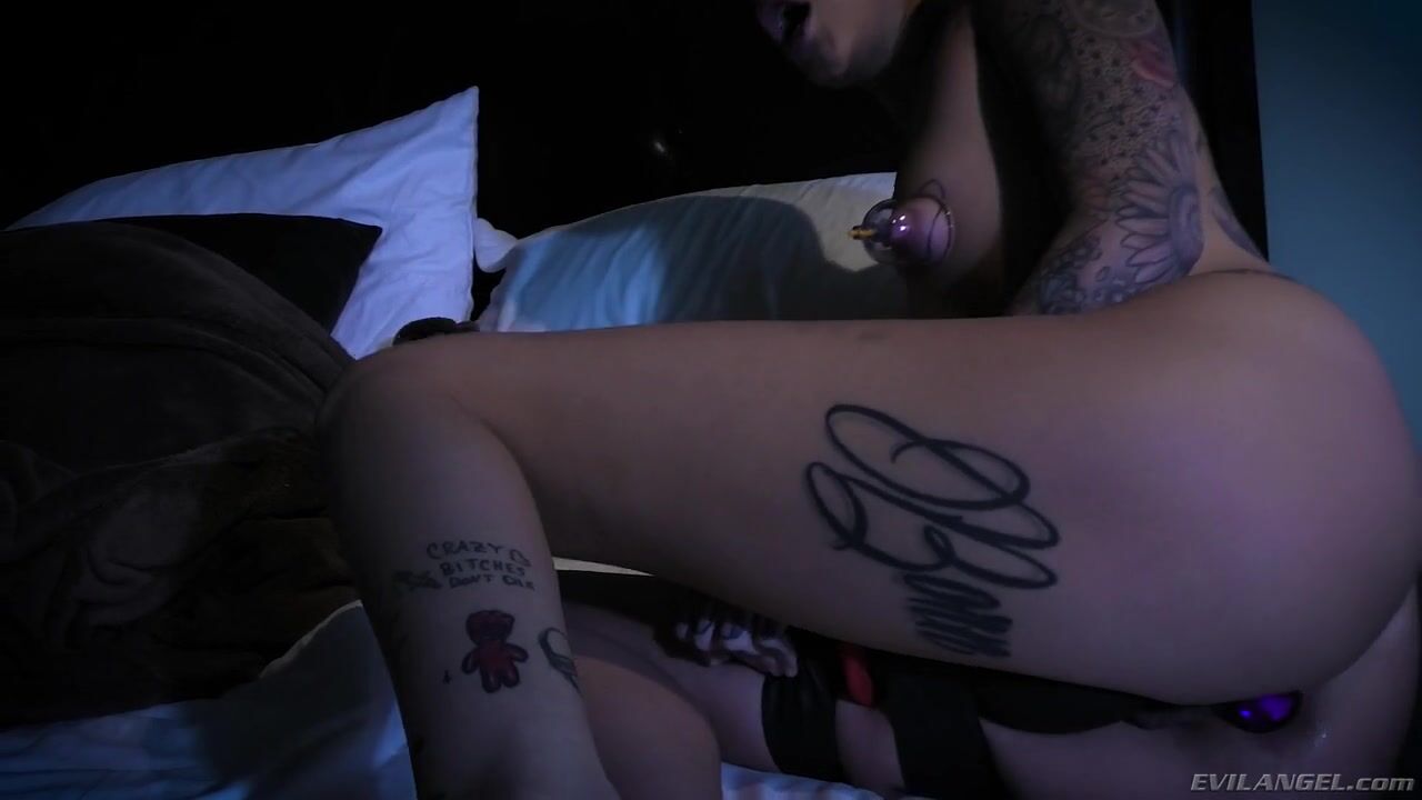 With suction devices on her nipples, a butt plug in place and a vibrator fastened to her pussy, Leigh Raven thrashes in bed. The natural-bodied beauty with the tightly cropped hair covers her elaborate tattoos with makeup; she reports to work in a wig and a business suit, her exoticism concealed. Leigh visits client Markus Dupree, and they argue angrily. He accosts her, tearing down her pants to eat her ass. Amid slapping and choking, he rips off her wig, grips her shorn head and fucks her mouth to gasping. Leigh responds with insane passion, and they fuck in animalistic style. He fingers her to multiple, squirting orgasms, and he reams her asshole to cavernous gaping. Wailing Leigh deep-throats cock ass-to-mouth and rims Markus subserviently. He delivers full nelson anal plowing, at one point lifting her bodily as he buttfucks her. She stretches her gaping anus for his tongue. They trade spit and squirt -- Leigh slurps girl cum from the leather couch and the floor. Markus creams Leigh's pretty face. He works her to one more torrential squirt and she rubs juice in her eyes.
