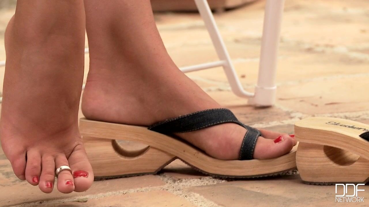 Linet returns and teases us after she enjoys a snack on the patio. Wearing a short pale yellow wrap over her matching bra and panties, shes also wearing cute sandals that show off her toes and toe rings. Of course, Linet is so gorgeous its hard to know what to look at first--her face, her tits, her ass, her pussy, or her 8.5 size feet.She thrusts her red-polished toes in our direction as she satisfies herself with an interesting toy that clamps onto her crotch and stimulates both her snatch and butt. As she gets hotter on her device, youll have plenty of opportunity to imagine worshipping her toes and her smudged bare soles as Denys DeFrancesco and his camera crews capture her from every conceivable angle. Linet looks like she wants her feet licked NOW and wont tolerate any hesitation. She knows shes beautiful and demands our tongue service all over those delectable feet! Youll be able to feel youre right there through her pix and HD video., 09/14/2011