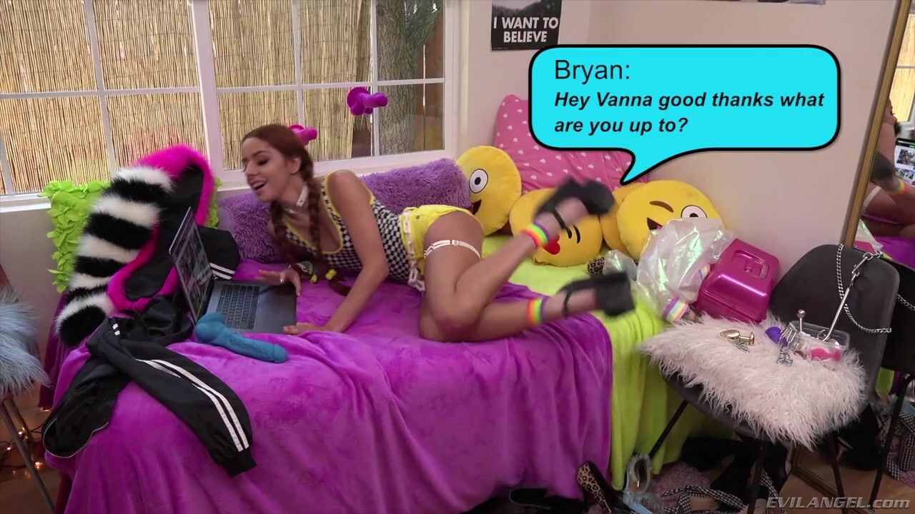 Tanned, brace-faced Vanna Bardot is a stylish teen that loves meeting older guys on the Internet. The spunky slut sucks a giant dildo as she chats online with director Bryan Gozzling, setting up a depraved afternoon date. She closes her eyes as Bryan worships her petite body, passionately kissing him throughout. Bryan fingers her to a squirting orgasm. The cock-hungry cutie gives him a nasty, slobber-soaked blowjob. Vanna trembles as Bryan hammers her tight twat, and she babbles in lust as he bangs her from behind. This outrageous fuck session features decadent throat fucking, lewd rimming and a massive facial cum slathering.