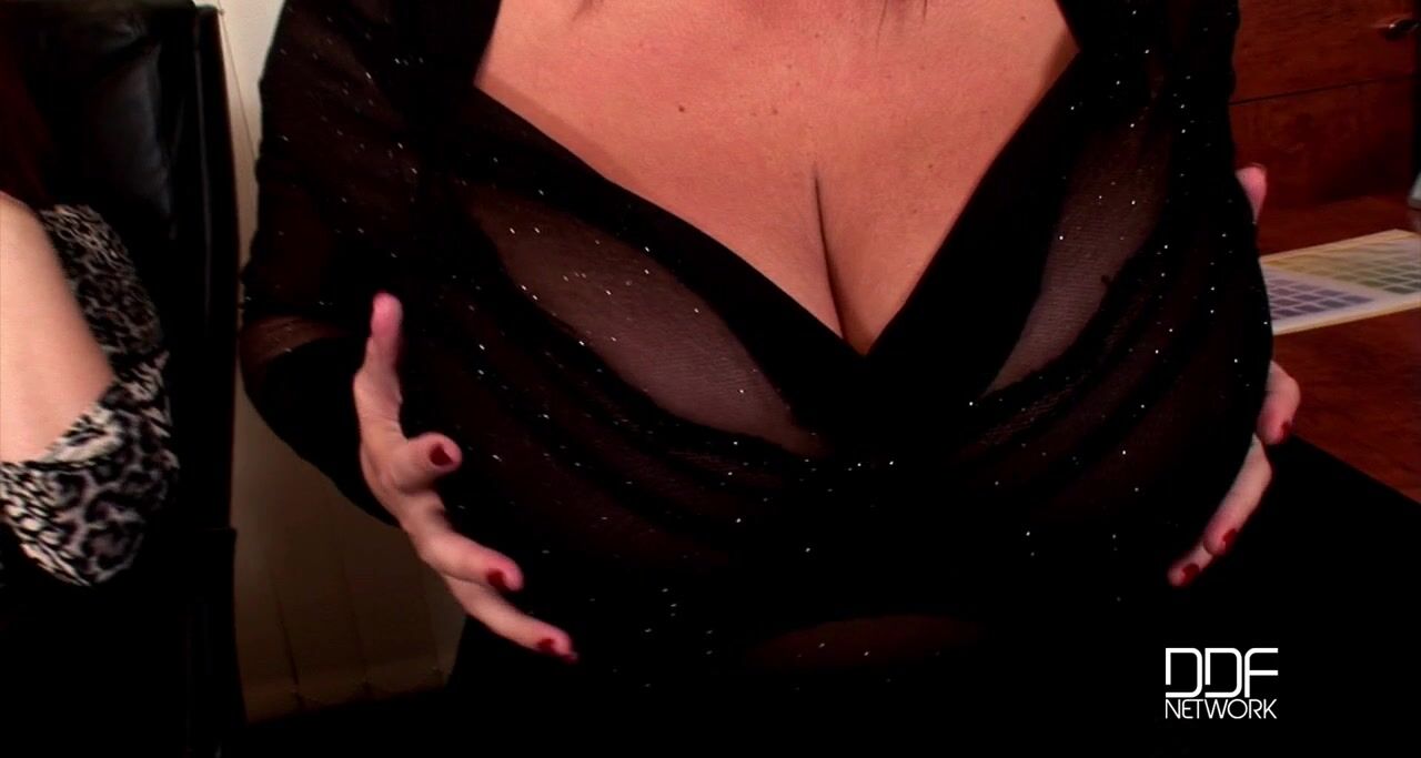 Can you imagine working in an office with a staff made up of Joanna 36H Bliss and Laura 40F M., whose combined boobage comes to a stunning 76 inches? Thats over six feet of slurp-stimulating mammaries, my friends, and naturally enough when this pair attempt to collaborate in a sedate corporate setting , they get distracted by each others generous endowments. Hungarian Laura is the instigator for the hooter hijinks, taking out a black dildo and inviting the Romanian Joanna to feel up her tits while she penetrates her own pussy.Soon Lauras squeezing Joannas squachies, and pressing Joannas mouth to her own melons. Denys DeFrancesco and his camera crews stage some impressive shots, such as one of Joanna kneeling in front of Laura and getting her face crammed between her office mates gigantic glands. At the same time, Joanna rests her own heavy bells on Lauras meaty thigh!!Joanna returns the favor and stands over Laura for awhile, letting the blonde suck on her nipples. Then Joanna takes off her dress and really lets Laura go to town with the squeezing and hefting and tugging and sucking of her enormous globes. Joanna lays back on the desk and Laura stands over her, burying Joannas face in her cleavage. Then, as if all this lusty lesbo boobie bumping isnt enough, Laura gets out some baby oil and massages Joannas jigglers, then mashing her own titans against them. And where do WE the audience fit in? Well, the ladies farewell smiles to us, only inches above their mighty racks, are the cue for the firing of our pent-up gizzum bombs! Just dont get any on your keyboards!, 02/08/2011