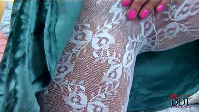 Here we are with with Lana, a brunette with smiling blue eyes and a tan body with lush titties that boast unusual pale nipplesan exotic treat!Lanas cleavage teasing makes you just wanna burrow your face between those sweet knockers. But we also get leg and foot poses as she peels out of her white lacy pantyhose! There are even pinup-style poses that you can download and print out for framing, as well as some BIG closeups of Lanas smooth snatch filled with a hot pink dildo. Good peeks at her tight pink asshole, too! Yep, youll really think pink after studying Lana!, 07/25/2010