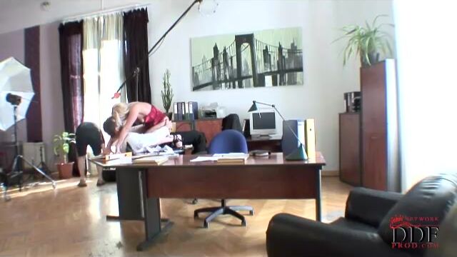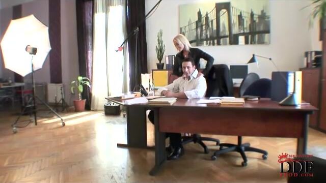 Hardcore backstage set of blonde Kathia & Nick Lang with his huge cock as they have vaginal & anal sex with fingering, sucking and licking! The lusty blonde girl in lingerie is horny by nature, and she cannot stop only at giving her boss a massage: she starts to let her hot round ass grabbed & goes down on Nick. She soon sees her moist pink filled with the guy's thick cock, and her smile tells us how much she enjoys it... The guy cannot stop here - she puts the sporty sexy chick in various positions, and fucks her anus hard as well, even in doggy - no wonder he ends up cumming on her ass!, 03/18/2010