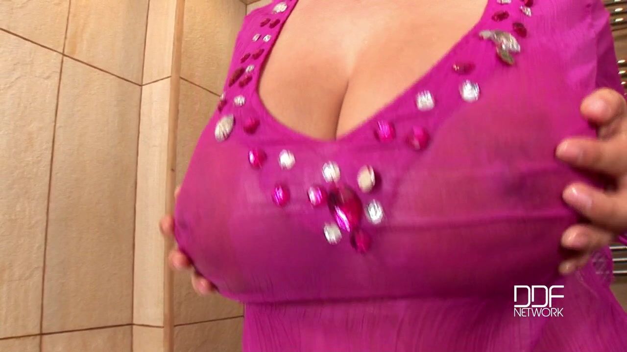 Welcome Shione Cooper, the 23-year-old Czech sensation who can weave a thousand erotic stories in my mind with her expressive face, not to mention those drool-inducing 36DDs.She peels out of a bath wrap, but even before she gets out of it, shes delivered the goods--because her eyes and flirty smiles (or a seductive pout) make the very idea of her nudity under that hot pink wrap all the more exciting. Whether shes crouching in the tub or pouring rosy bath beads over herself, ye ole Uncle Irv cant take his eyes off her! If you like a girl whos playful, thats Shione. If you like em sultry, like a femme fatale, thats Shione too. She has the power of a Scheherazade from the Arabian Nights tales, a temptress who casts a spell over our nuts even when she simply squats down naked in the tub to wet herself from the faucet, or to let the Jacuzzi waters splash all over her jumbo jugs. Boy, I sure would like to be six inches tall and rowing a little toy boat in the bathtub while Shione splashes around! What a sight that would be! And then later to return to my former height to sink into the softness of her magnificent bells and suck to my hearts content! Say, what are YOUR fantasies about Miss Cooper? If youre a member, you can check out the new images immediately and find out; if youre not, youll miss one of the true masterpiece pictorials and videos here on DDFBusty.com!, 12/05/2010
