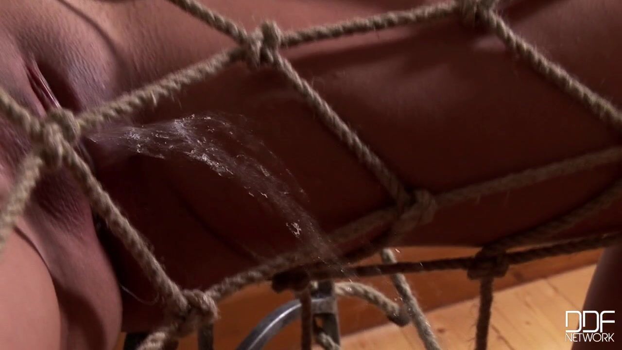Sexy brunette babe Lana's naked body is bound to a chair with a tight net & in her excitement she lets her pee flow from her shaved pussy! See this beautiful young girl totally exposed to your desires..., 10/04/2010