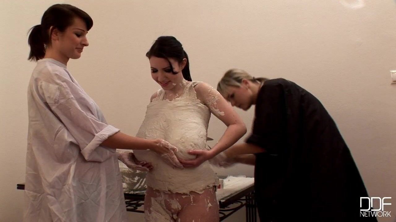 Karina Heart! This Czech stunner with the innocent face and tantalizing toppers has appeared in ten sets including her update today! In her new set, Karina gets her rack immortalized when two attractive young ladies prepare her tits for casting in Plaster of Paris! This is a ritual that has been practiced with jiggle queens since time immemorial--in fact, Ive seen an old pictorial and film of the 1950s stripper Tempest Storm and her 40DDs getting the same thing done to her in front of a crew of newspaper reporters.Anyway, first the girls coat Karinas chest puppies with some protective goo, and then they pour on plaster to make the cast. Dont try this at home without proper precautions, as it can be dangerous (at least according to what I read on Wikipedia)! But in the skilled hands of our comely DDFBusty.com crew, Karinas paps are soon plastered for posterity, but not before one of the ladies playfully tries to lick the cast!!, 08/05/2010