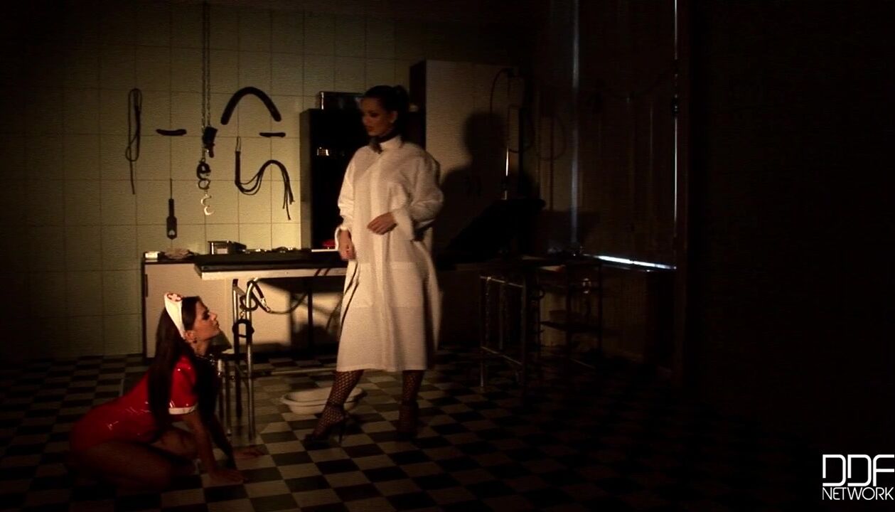 Are you ready for some hot fetish lesbian action today? Well, I really felt like getting kinky and dominating over a sexy slave and knew Black Angelica would be the perfect match. With Black Angelica in a nurse uniform and dog collar around her neck, I walk her into a medical office on her hands and knees. Under my doctors jacket Im wearing a black fishnet and latex outfit with a hole conveniently cut out at the crotch and make her suck my love box.I reward Black Angelicas pussy licking skills by giving her a good milking. I get her up on the exam table, put medical gloves on, and then proceed to finger her. I put some gel in and around her pink to get her nice and slick, and stick a douching tube inside her and fill her up with milk. She goes wild feeling the liquid fill up her insides and come spilling out. And like a good slave, she licks the milk off the table.Of course, she has to show me her thanks and she does so by sticking her face into my crotch and lick away until I cum all over her mouth., 03/11/2010