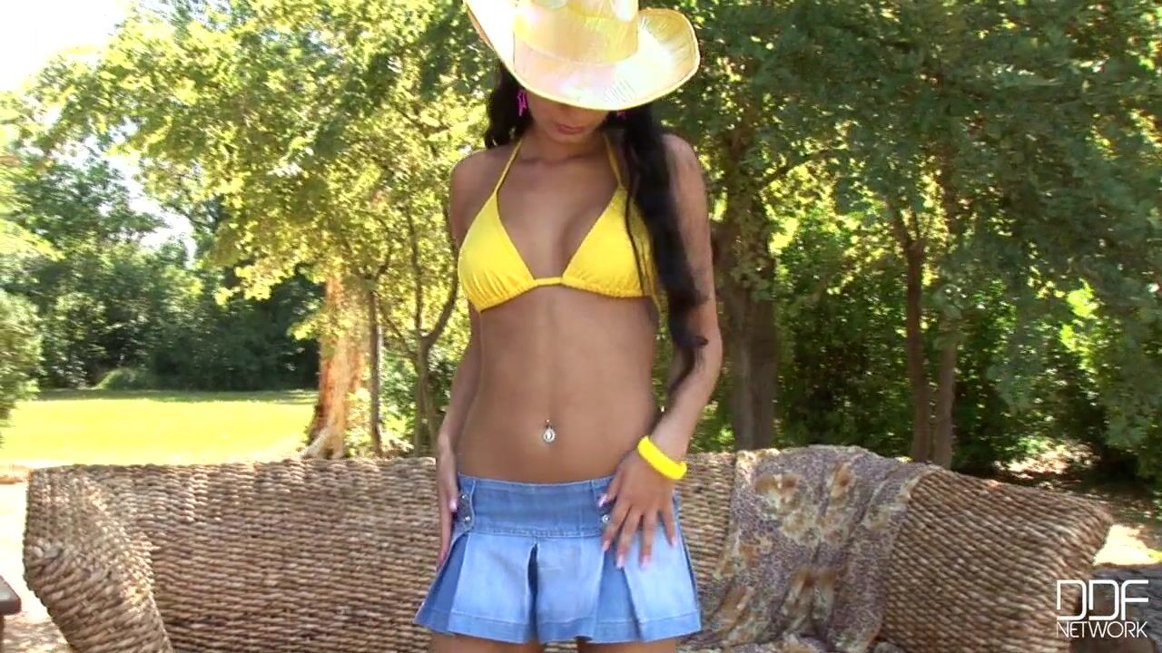 Stacy Da Silva might be from the Czech Republic, but today she sure looks at home as a cowgirl ready to roam the Western range for sturdy cowpokes to scratch any itch that might come up in that 34B-23-35 figure of hers! Well, in the current absence of any Tex, Clint, or Duke, shell just get comfy on the couch with her trusty pink vibrator--after, of course, that shes worked up herself (and us!) into a lather with a nice little strip show that leaves her just in her hat and colorful boots. Relaxing with her toy on the wicker couch, she spreads those alluring thighs so she can get just the right angle to squeeze in her prurient partner, that reliably thrumming rod. Come, come on the range might be her theme song as this cowgirl lets loose her climax in pics and video!, 11/04/2009